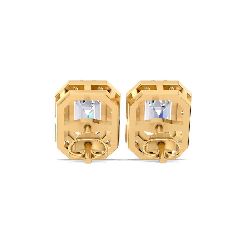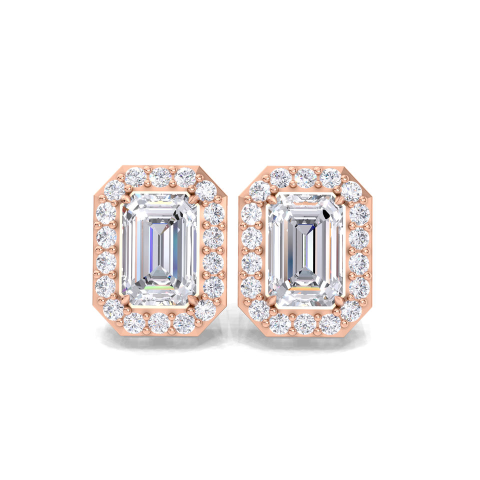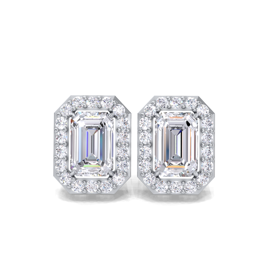 ต่างหูเพชรทรงเหลี่ยมมรกต 1 กะรัต แบบ Halo ชุบทองคำขาว 18K ชุบทองคำขาว ชุบทองคำชมพู ชุบโรเดียม ดีไซน์หรูหราทรงแปดเหลี่ยม