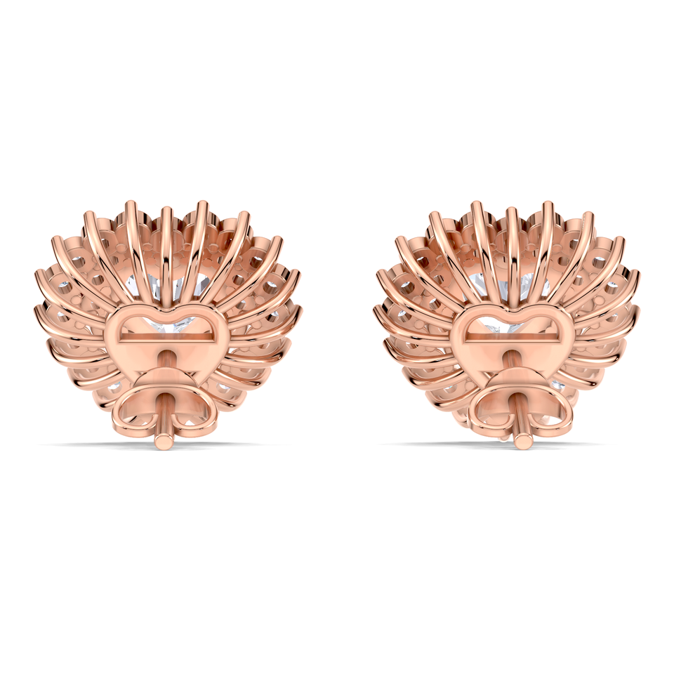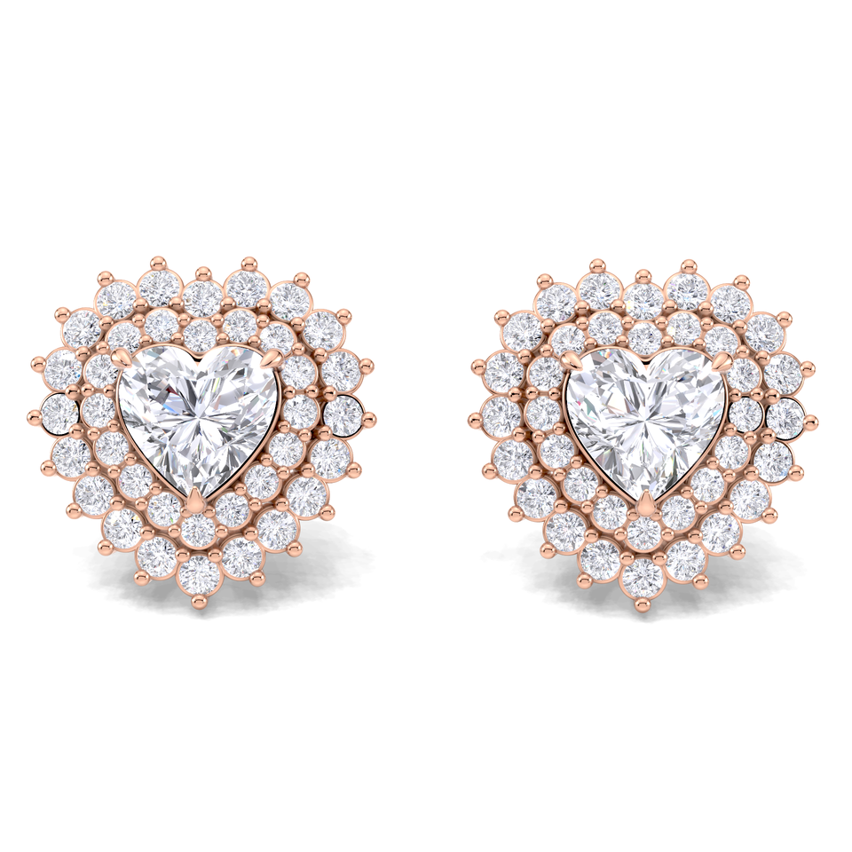 ต่างหูเพชรทรงหัวใจ 1 กะรัต ประดับด้วยเพชรแบบดับเบิ้ลฮาโล ทอง 9K สีเหลือง ขาว และโรสโกลด์ แบบเกลียวหลัง สำหรับเจ้าสาว เครื่องประดับชั้นดี