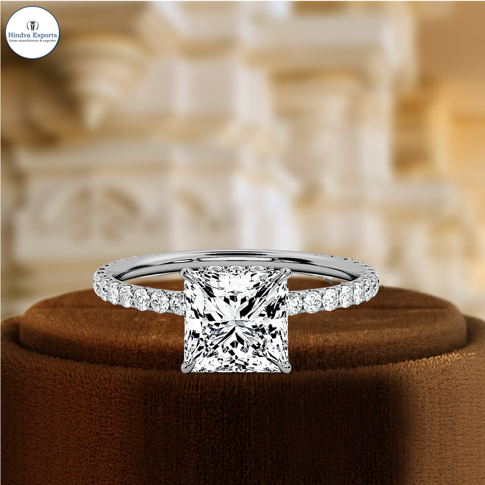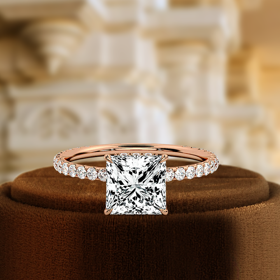 แหวนเพชรเพาะเลี้ยงทรงเจ้าหญิง 1 กะรัต ทอง 14K แหวนเพชรเม็ดเดี่ยวแบบซ่อนรัศมี ประดับเพชรแบบฝังเต็มวง แหวนแต่งงาน
