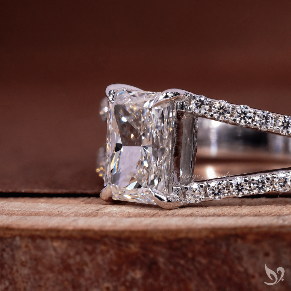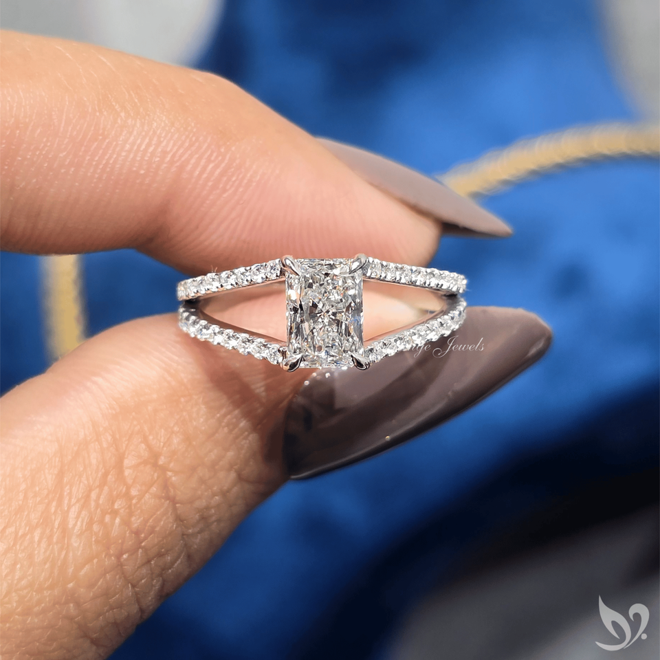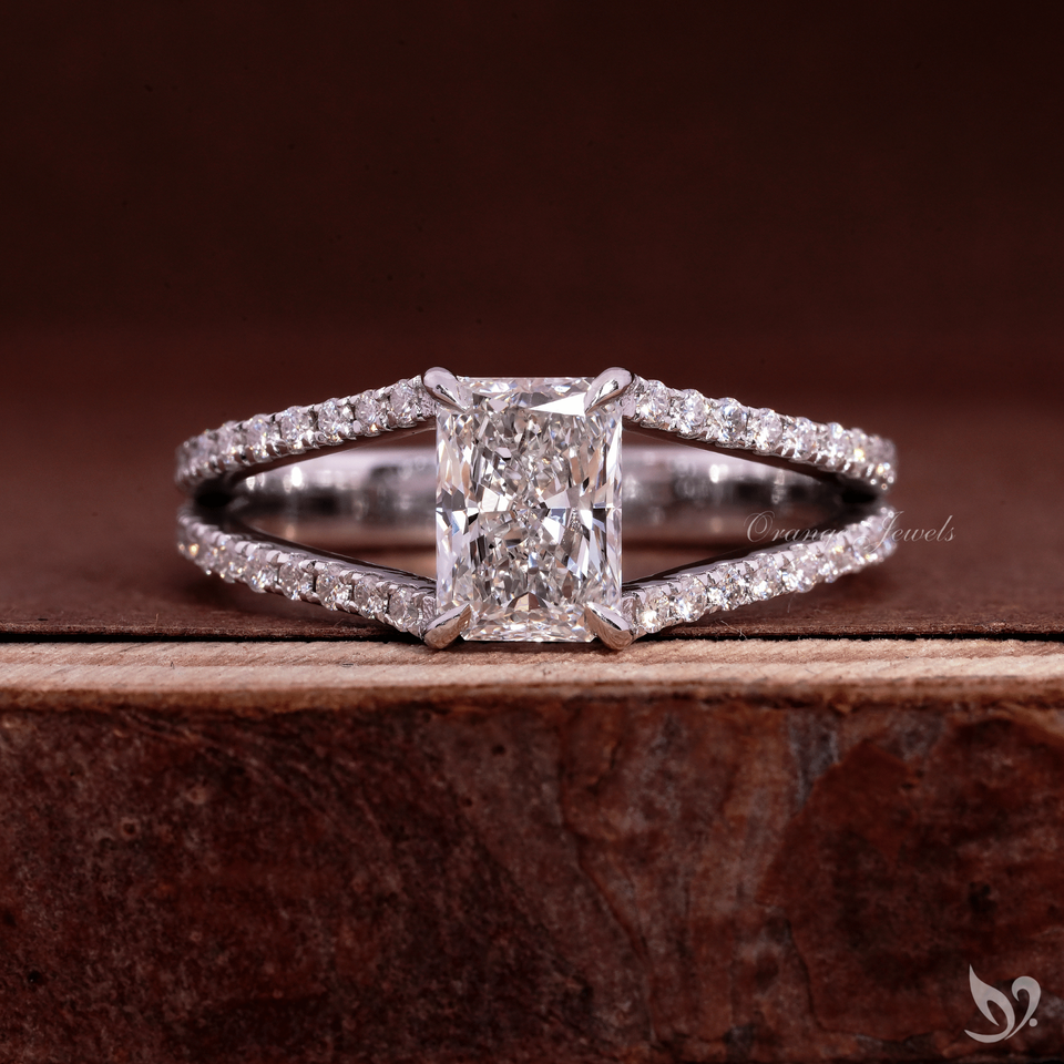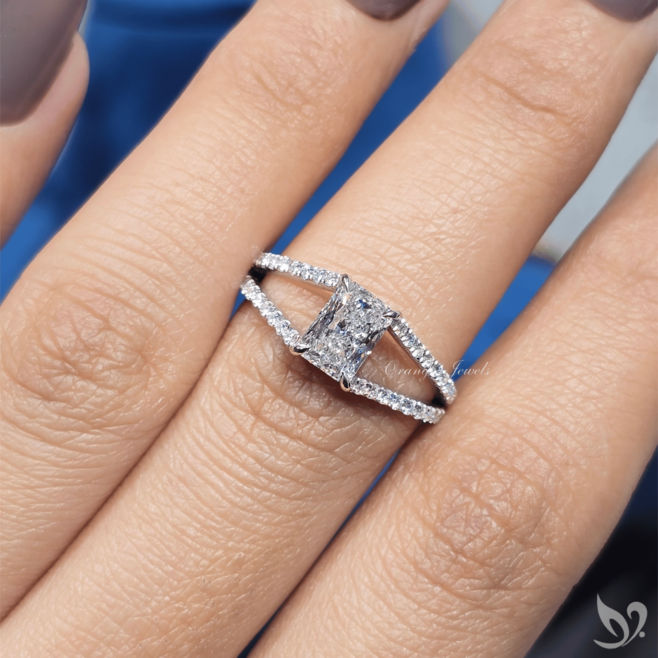 แหวนเพชรทรงรัศมี 1 กะรัต เพชรเลี้ยงในห้องปฏิบัติการ ดีไซน์หรูหรา สำหรับขอแต่งงาน รับรองโดย IGI ทองคำขาว 10K ประดับเพชรแบบสปลิตเพฟ ของขวัญสำหรับงานหมั้นและงานแต่งงาน