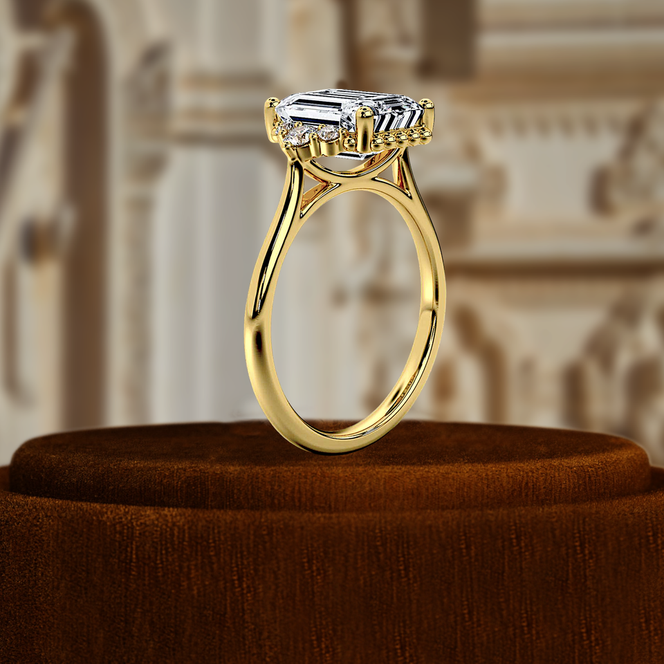 แหวนหมั้นเพชรทรงกลม 1 กะรัต เพชรเลี้ยงในห้องปฏิบัติการ แบบฝังทรง Cathedral แหวนแต่งงาน เพชรทรงกลมเพาะเลี้ยงในห้องปฏิบัติการ แหวนเจ้าสาว
