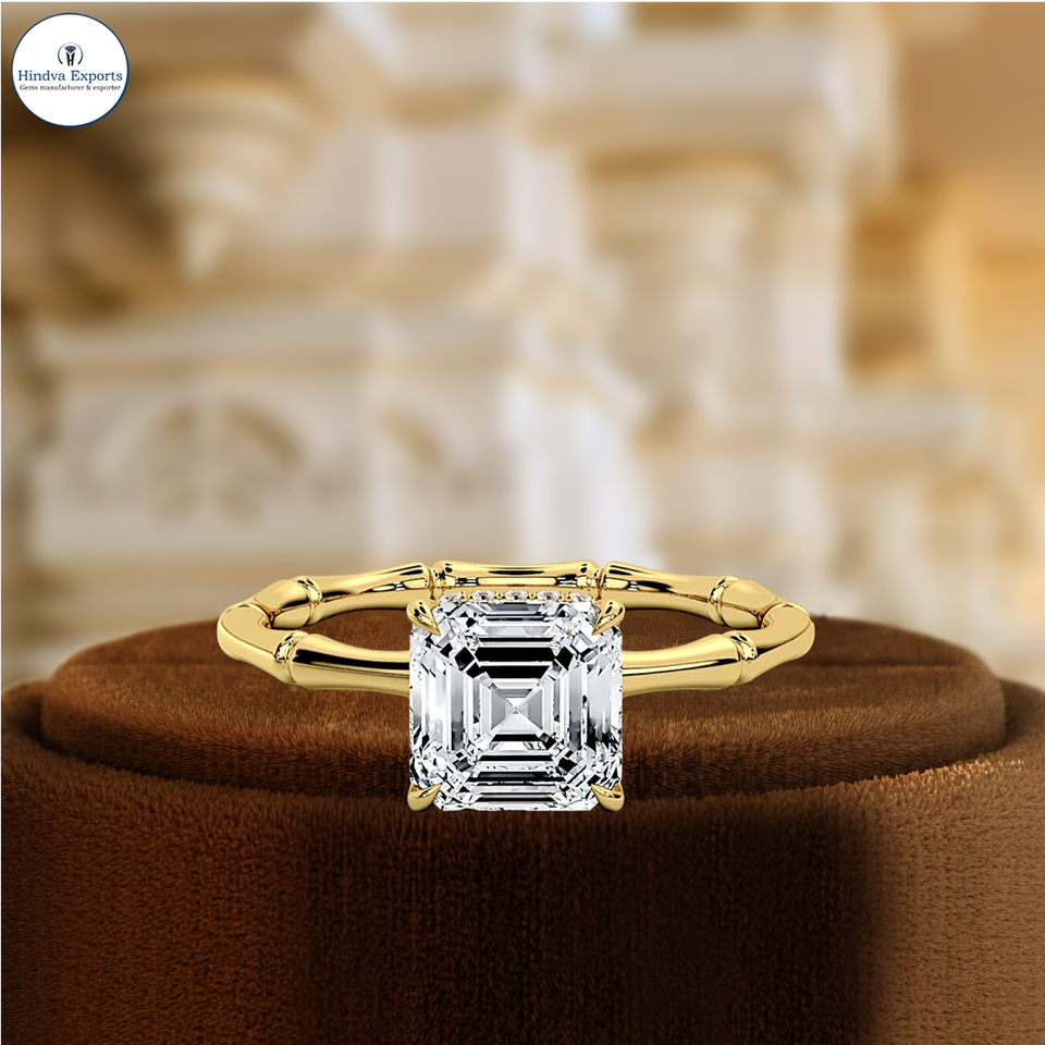 แหวนเพชรทรง Asscher 1 กะรัต ได้รับการรับรองจาก IGI แหวนของขวัญสำหรับเธอ แหวนแต่งงานเพชรเลี้ยงในห้องปฏิบัติการทรงไม้ไผ่แกว่ง ทองคำแท้ 14K