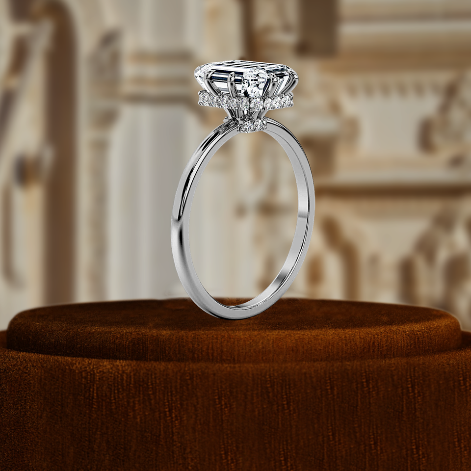 แหวนหมั้นเพชรเพาะเลี้ยง 1 กะรัต, แหวนแต่งงานทรงมรกตแบบฝังเพชร, รับรองโดย IGI, ทองคำขาว 14k ของขวัญที่ดีที่สุดสำหรับเธอในวันพิเศษ