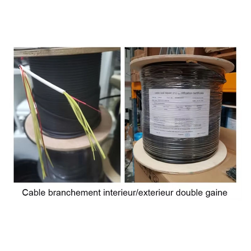 สายไฟเบอร์ออปติก 1FO แบบมีปลอกหุ้มคู่ FRPs สำหรับใช้งานภายในและภายนอกอาคาร ขนาด 5.0 มม. 6.0 มม. 1fo G657A2-Aerial/Conduite -TOURET 500 เมตร 1FO