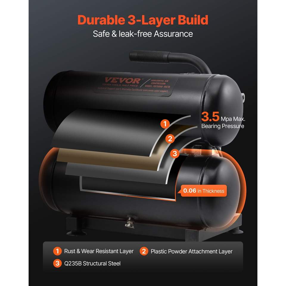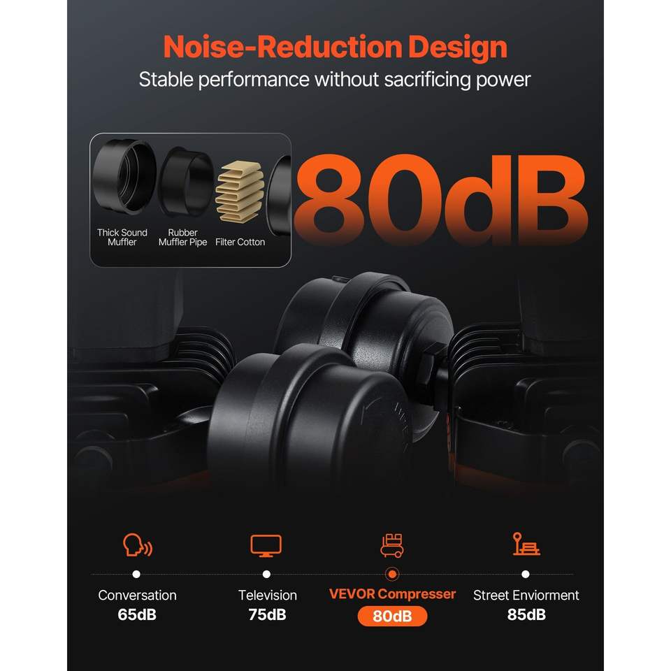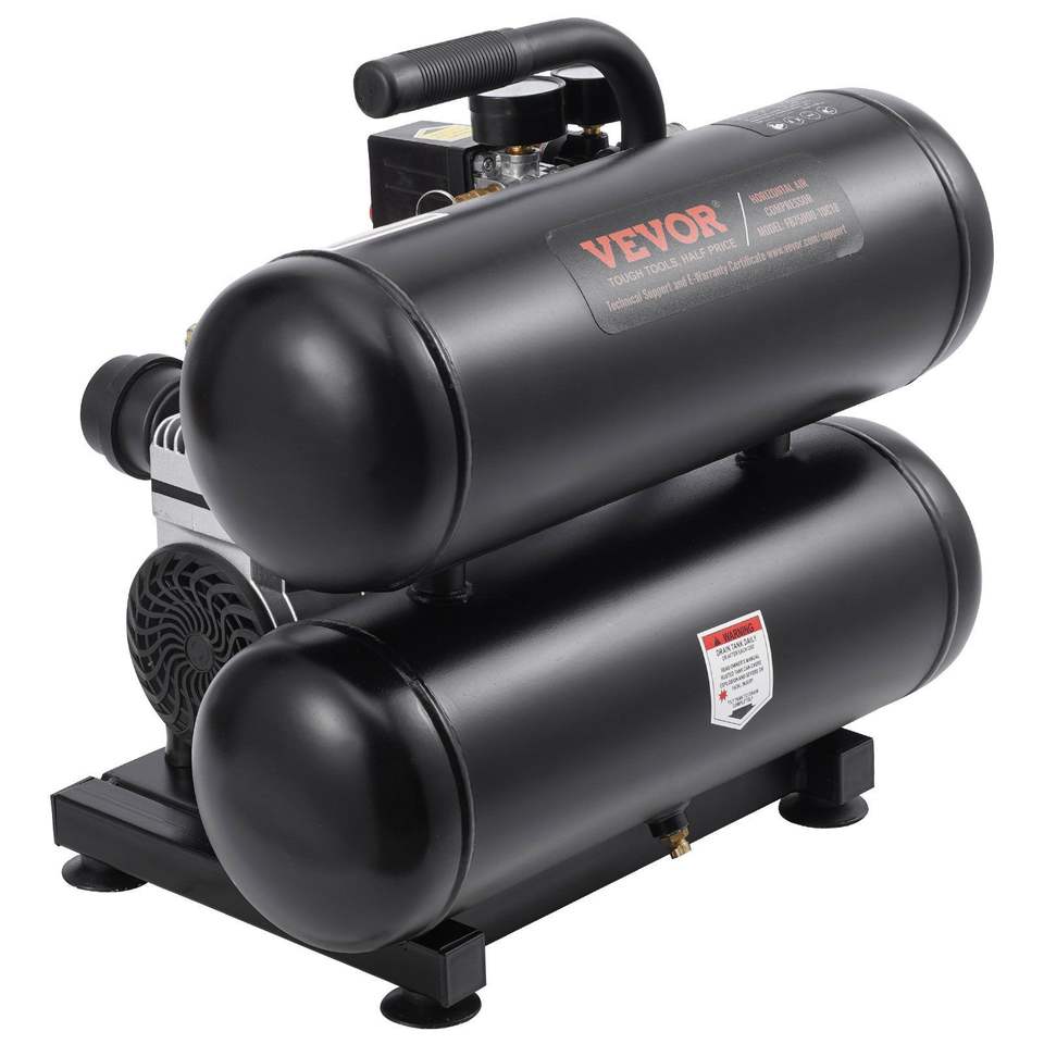 เครื่องอัดอากาศแบบไร้น้ำมัน 1 แรงม้า 2.2 CFM ที่ 90 PSI เงียบพิเศษ ถังเหล็กขนาด 4.6 แกลลอน แรงดันสูงสุด 120 PSI ระดับเสียง 80dB