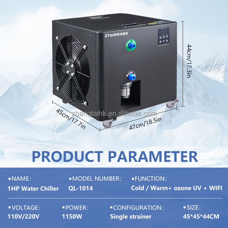 เครื่องทำน้ำเย็นสำหรับแช่น้ำแข็ง 1 แรงม้า ควบคุมผ่าน WiFi 220V สภาพใหม่ พร้อมระบบฆ่าเชื้อ UV