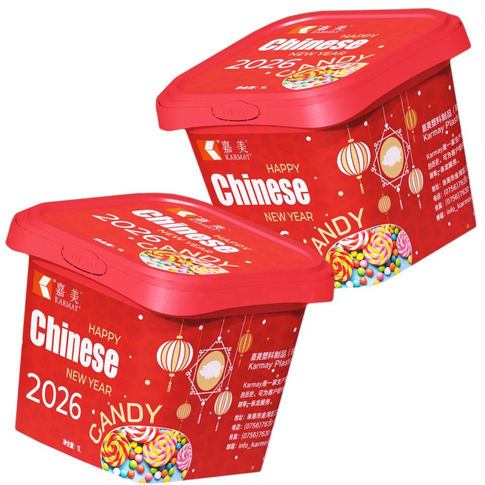 กล่องพลาสติกใส่ขนม ขนาด 1 ลิตร 30 ออนซ์ สำหรับเก็บขนมหวาน แบบสุญญากาศ มีฝาปิด ลาย IML สำหรับเทศกาลตรุษจีน ทรงสี่เหลี่ยม สีแดง