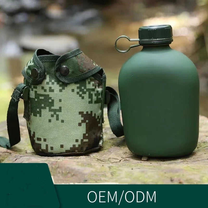 ขวดน้ำอลูมิเนียมสำหรับกิจกรรมกลางแจ้ง 1 ลิตร พร้อมถ้วยทำอาหาร สำหรับการเอาชีวิตรอดและการกิจกรรมต่างๆ ผลิตภัณฑ์เครื่องดื่ม