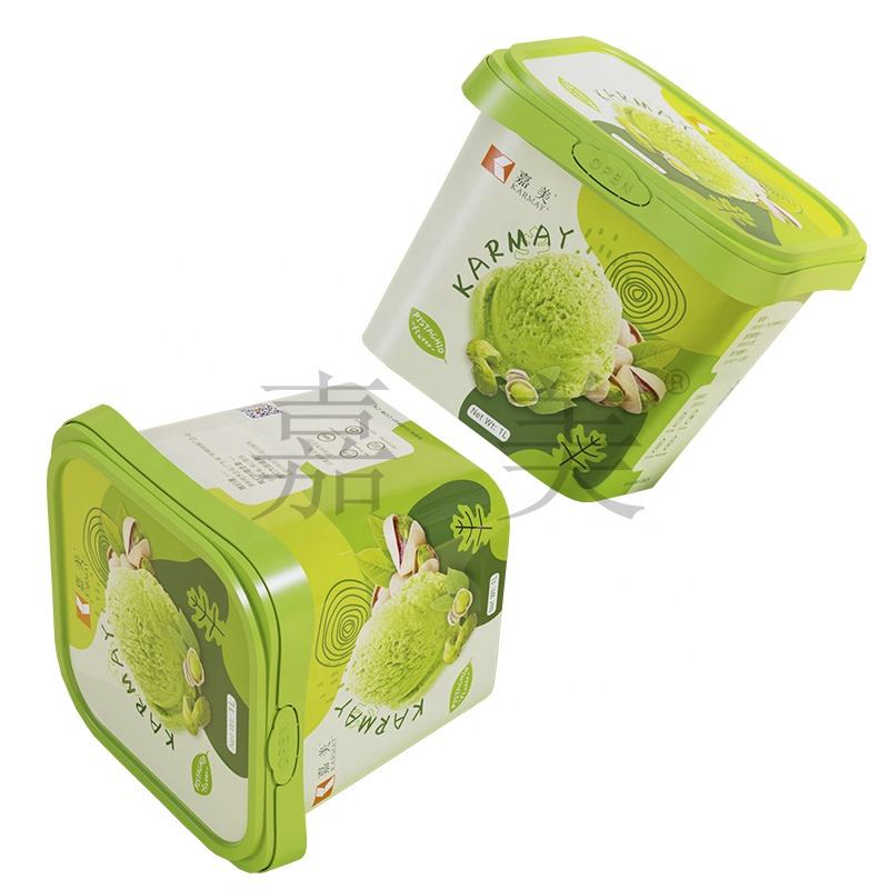 อ่างไอศกรีมรสพิสตาชิโอ1L พร้อมฝาปิดหม้อไอศกรีมสีเขียวกล่องพลาสติกรีไซเคิล