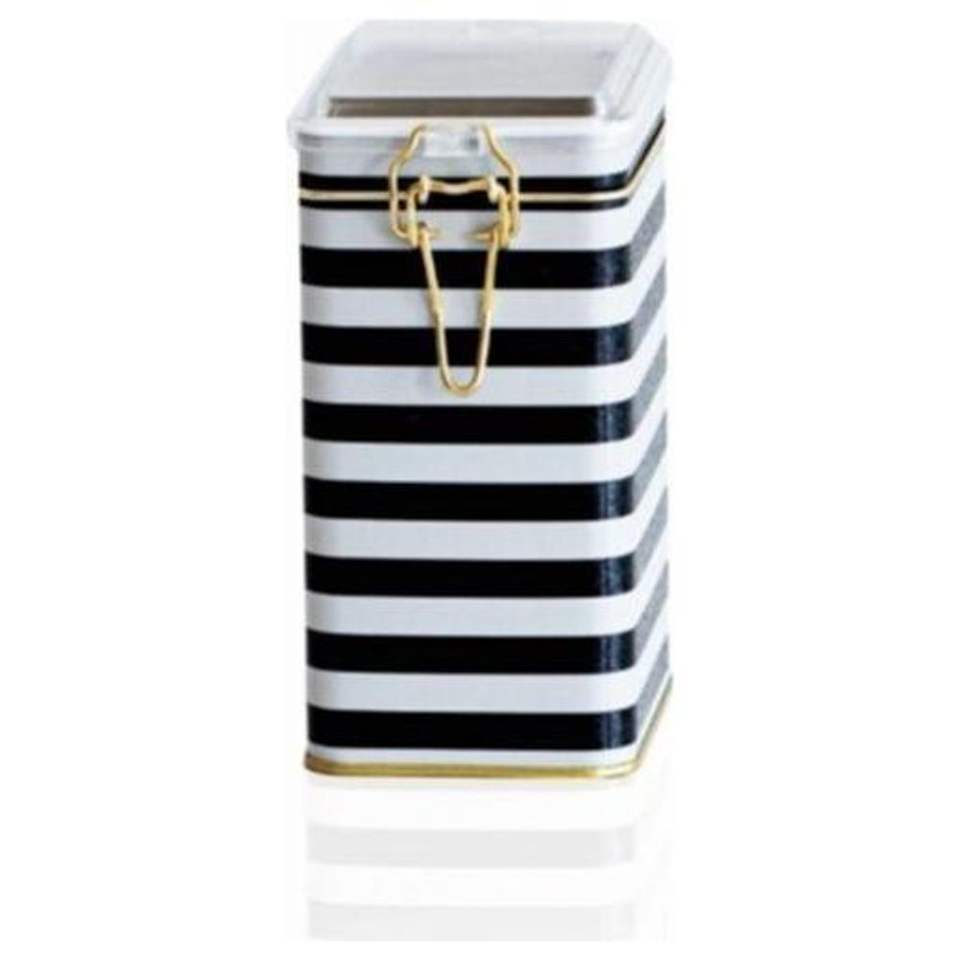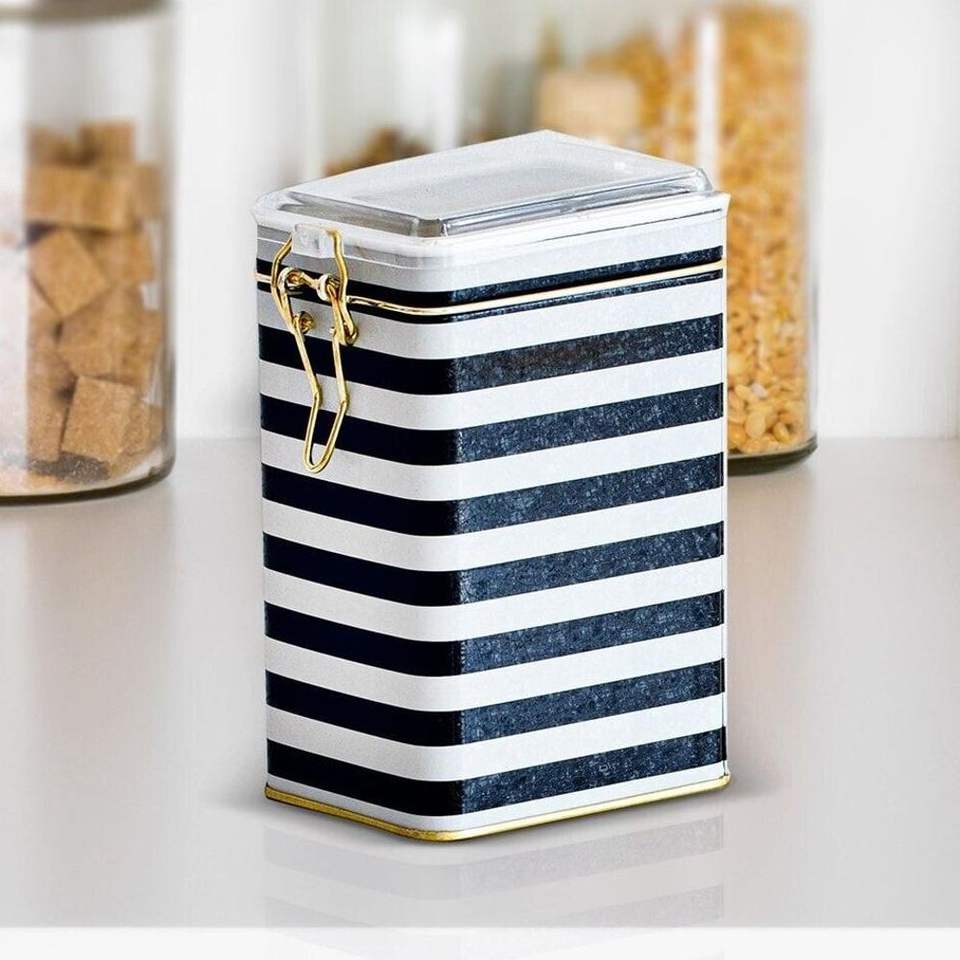กล่องโลหะทรงสี่เหลี่ยมสาย1L พร้อมฝาปิดโปร่งใสขนาด75X100X150มม. มีลายเส้นสีดำและสีขาว