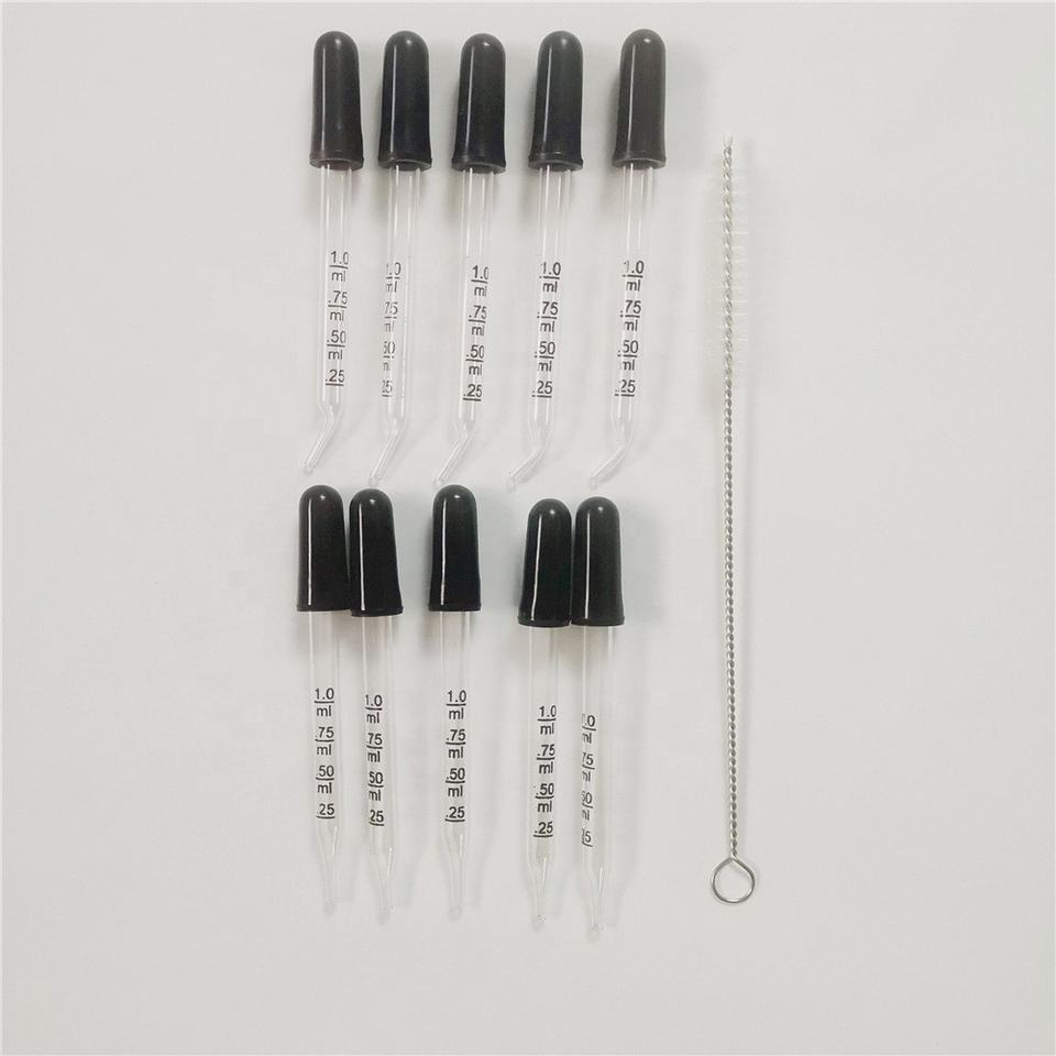 1มล. ตรงปลายน้ำมันหอมระเหยหยดตาแก้วหลอดดูดสีดำสำหรับแพคเกจยาศิลปะของเหลว