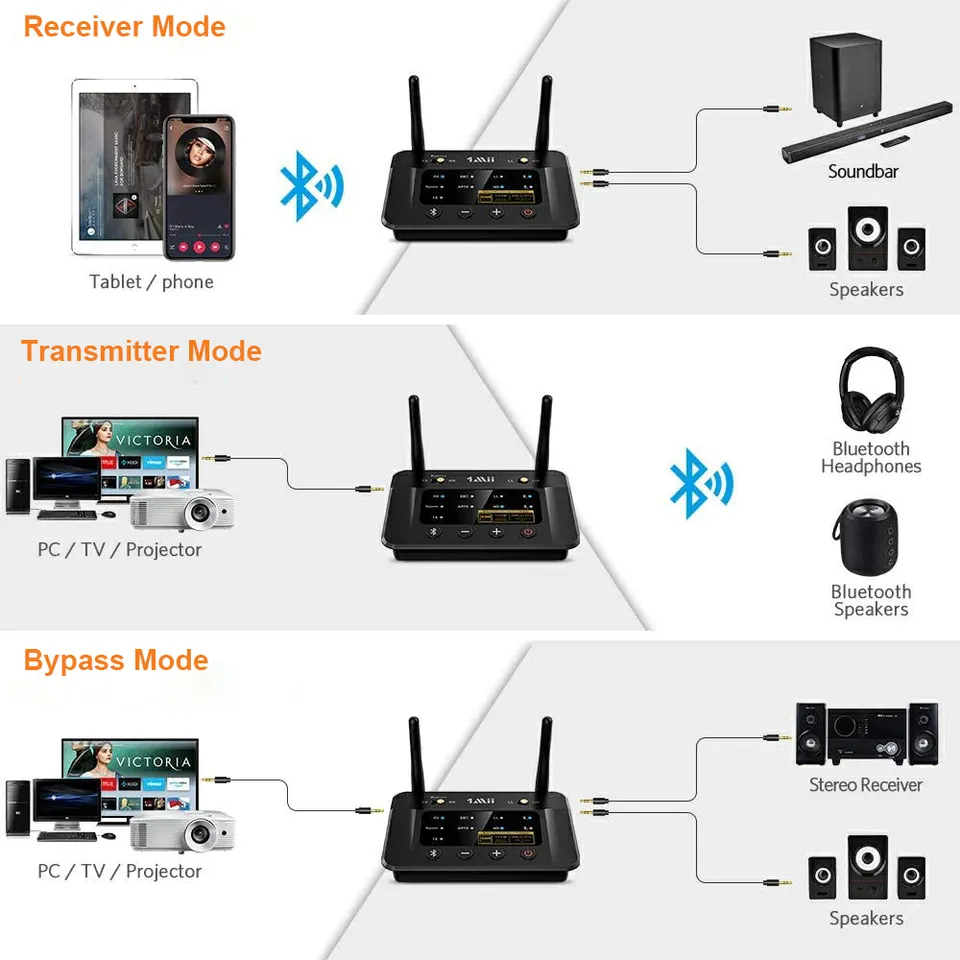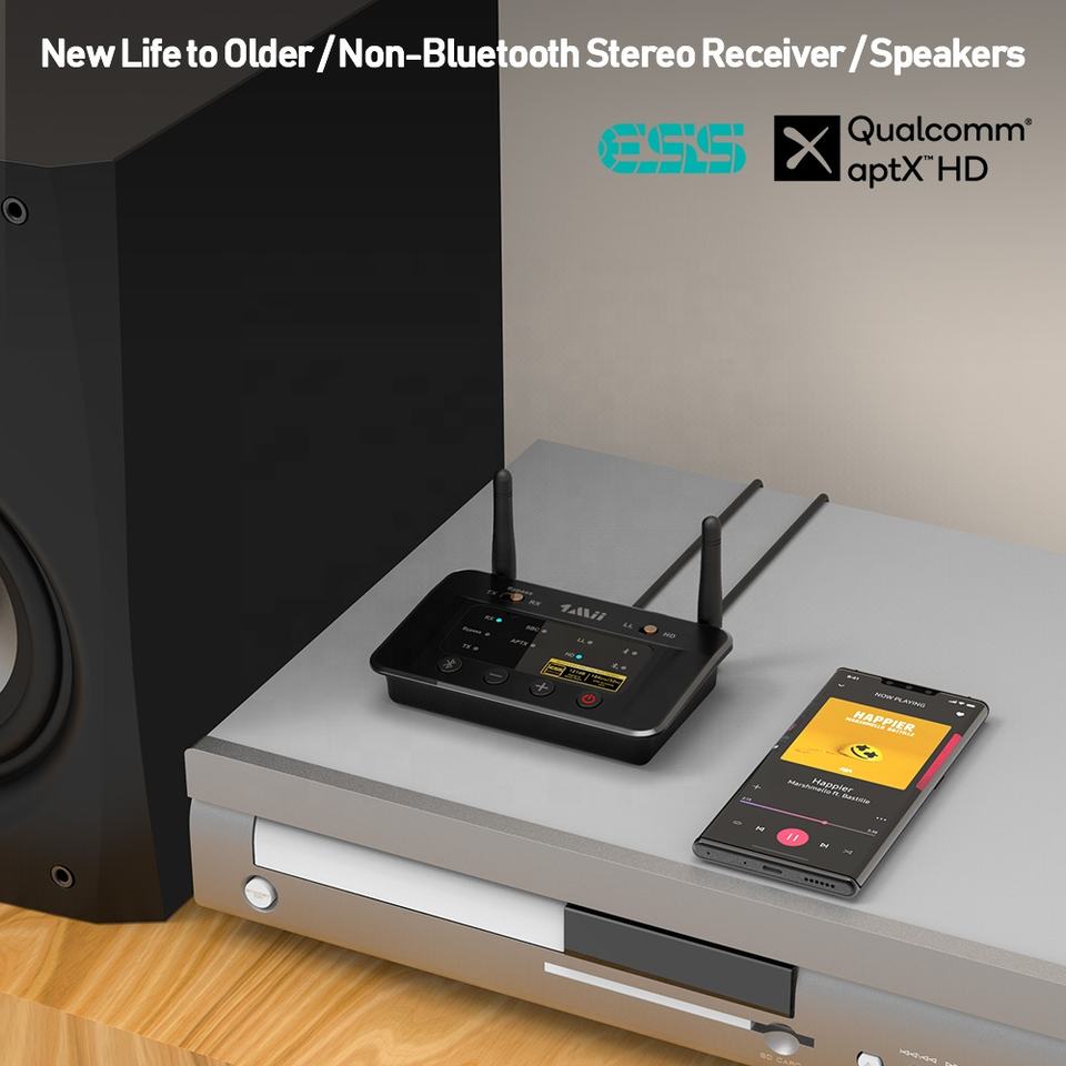1Mii DAC AUDIO HIFI เครื่องส่งและตัวรับสัญญาณไร้สายพร้อม aptX-lm/hd 3 in 1 TX + RX + โหมดบายพาสอะแดปเตอร์เสียงบลูทูธสำหรับทีวี
