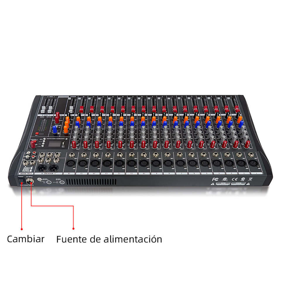 มิกเซอร์เสียงระดับมืออาชีพสำหรับสตูดิโอ ดีไซน์ใหม่ 1Moq อุปกรณ์ดนตรี มิกเซอร์ดีเจ 16 แชนแนล พร้อมไมโครโฟนเสริม เอฟเฟคเสียงก้อง