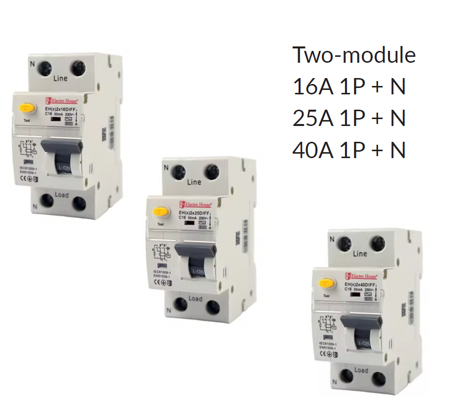 1P + N 2โมดูล16A 4.5kA 230-240V RCBO เบรกเกอร์ ABS พลาสติกที่เหลือในปัจจุบันมีการป้องกันกระแสเกิน