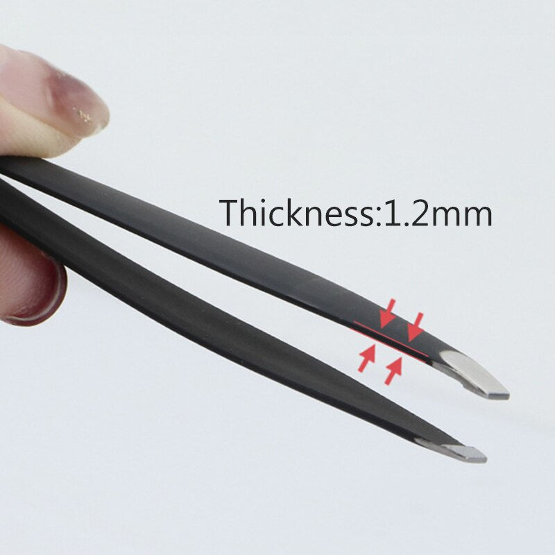 แหนบถอนคิ้วสีดำ1ชิ้นแหนบคิ้วสแตนเลสมืออาชีพปลายแบนปลายเรียบ