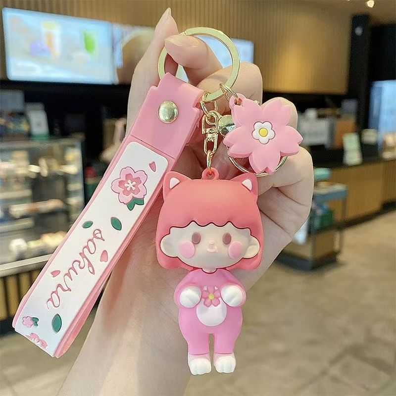 พวงกุญแจสาวซากุระน่ารัก 1 ชิ้น จี้แฟชั่นสุดเก๋ ตุ๊กตาสำหรับกระเป๋าเป้และรถยนต์ ทำจากวัสดุ PVC เป็นมิตรกับสิ่งแวดล้อม พร้อมดีเทลพู่ห้อย