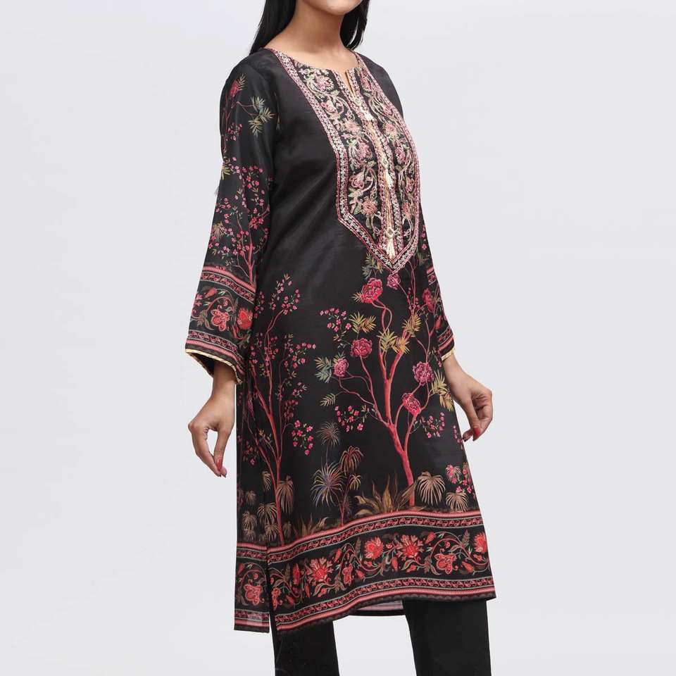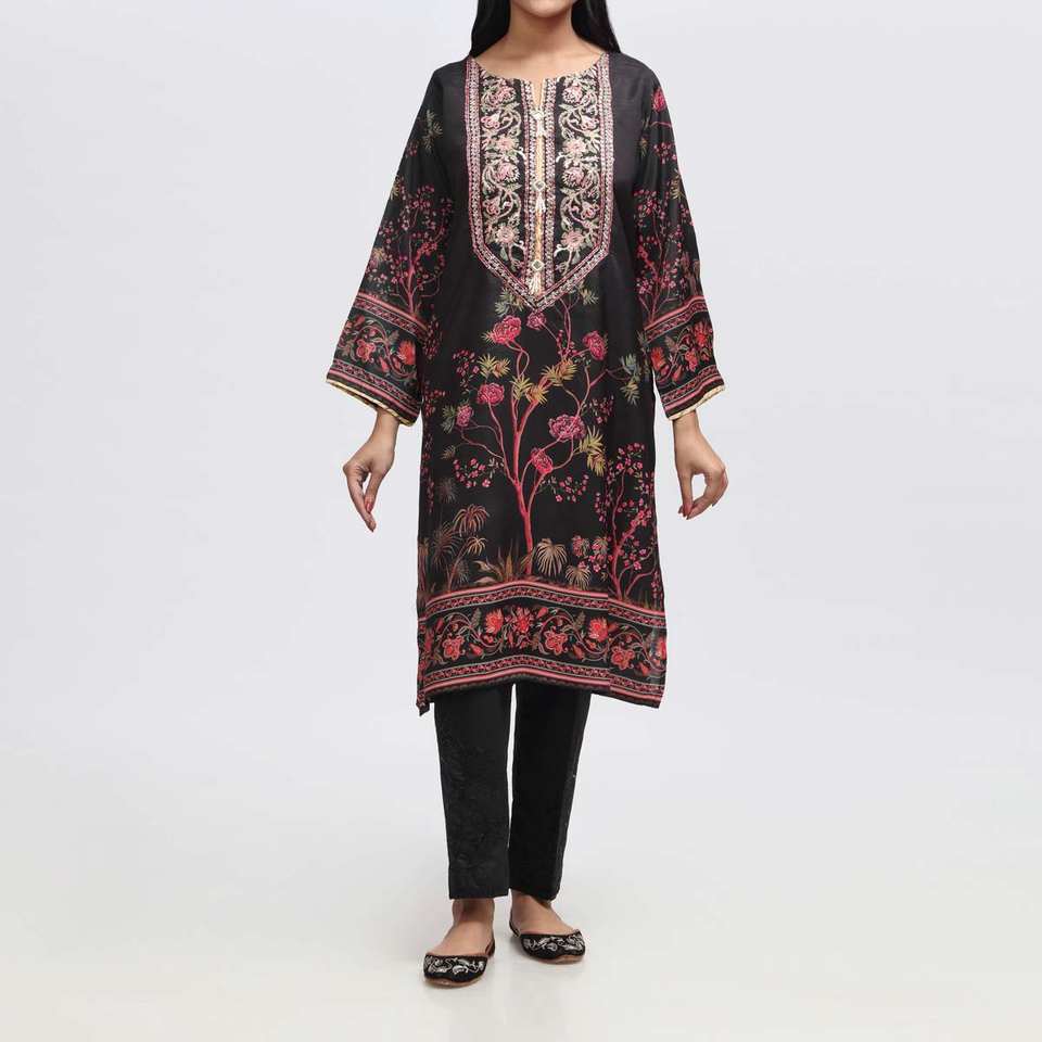 ชุดผ้าไหมดิบปัก & พิมพ์ลายเสื้อ PW3060 1ชิ้น