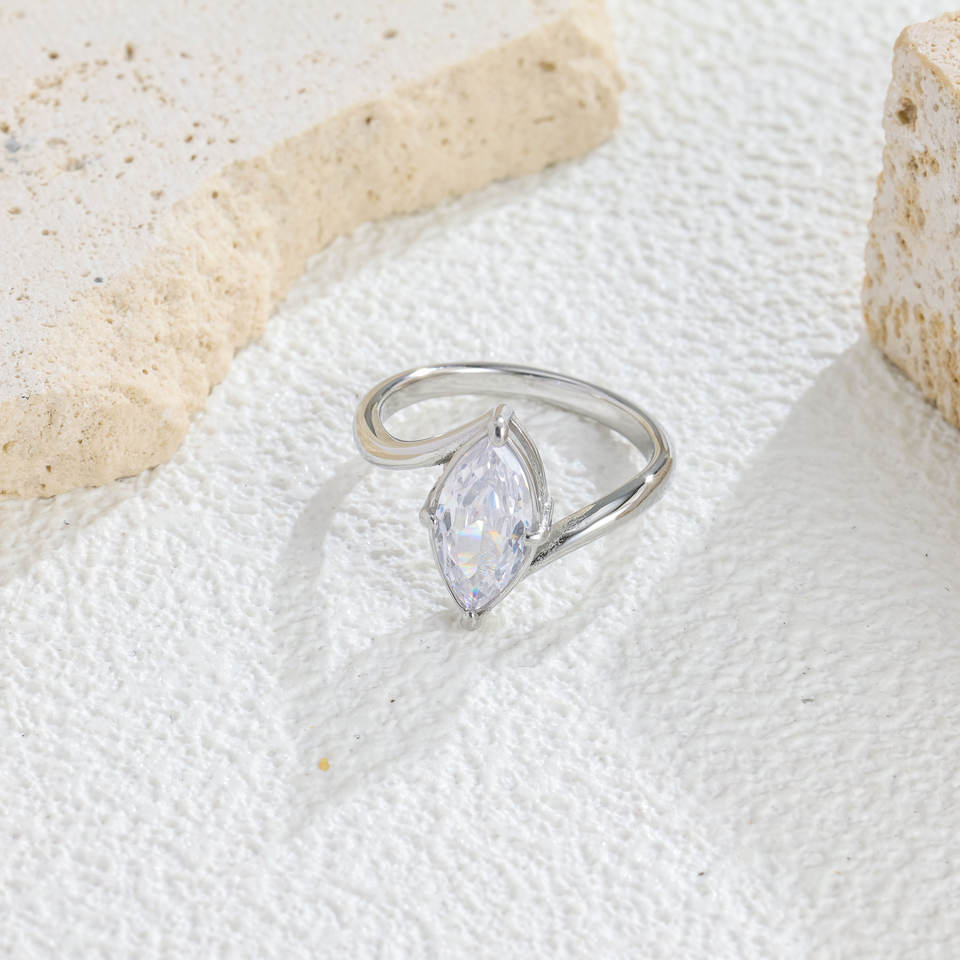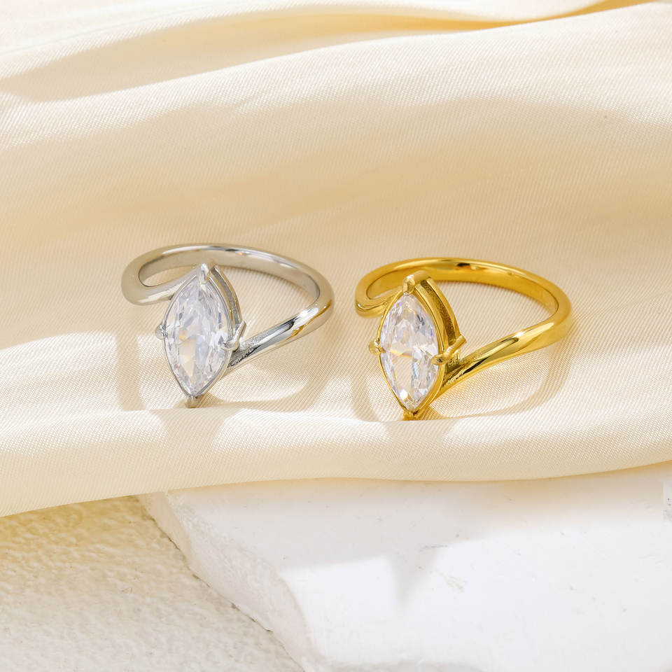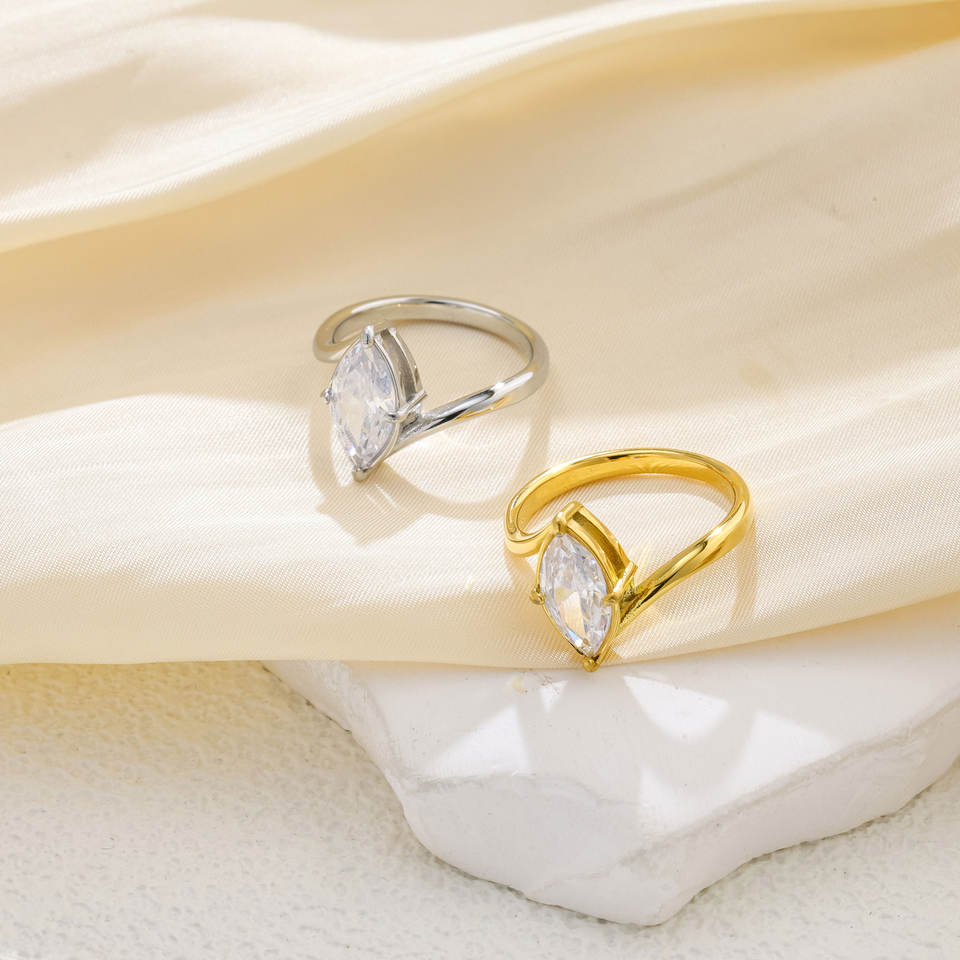 แหวนสแตนเลสสตีลทรงมาร์คีส์ประดับเพชรซิร์คอนสองสีทองและเงินโบราณ 1 วง - ดีไซน์แบบหนามเตย ทันสมัย เหมาะสำหรับใส่ทุกวัน หรูหรา ระยิบระยับ