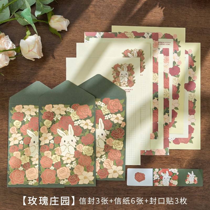 เซ็ตซองกระดาษลายหมอกยามเช้า1ชิ้นชุดของขวัญส่วนตัวลายความรักโรแมนติกระดับพรีเมียมพร้อมแผ่นฟอยล์สีทองประทับตรา ROSA rugosa