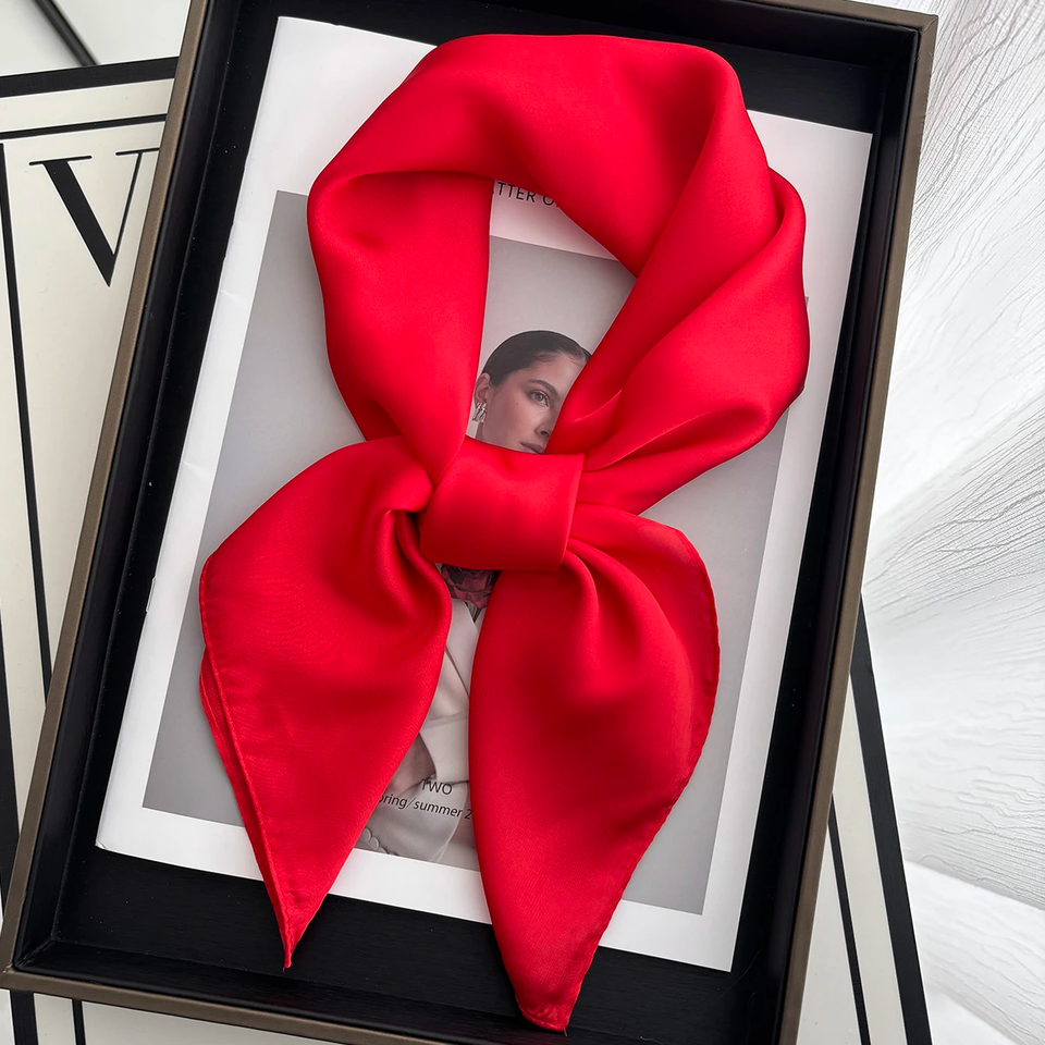 ผ้าพันคอไหมสีพื้น 1 ผืน สำหรับผู้หญิง ผ้าพันคอแฟชั่นชายหาดสุดหรู ผ้าโพกผม ผ้าพันคอ ผ้าคลุมไหล่ ฮิญาบ