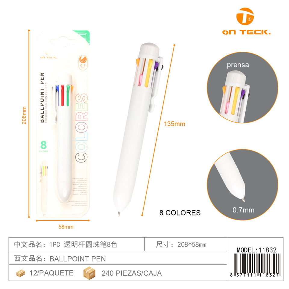 ปากกาลูกลื่นแบบใส 1 ชิ้น 8 สี ปากกาลูกลื่นแบบใส 1 ชิ้น 8 สี ทนทาน พกพาสะดวก น้ำหนักเบา เหมาะสำหรับการเขียนในโรงเรียน