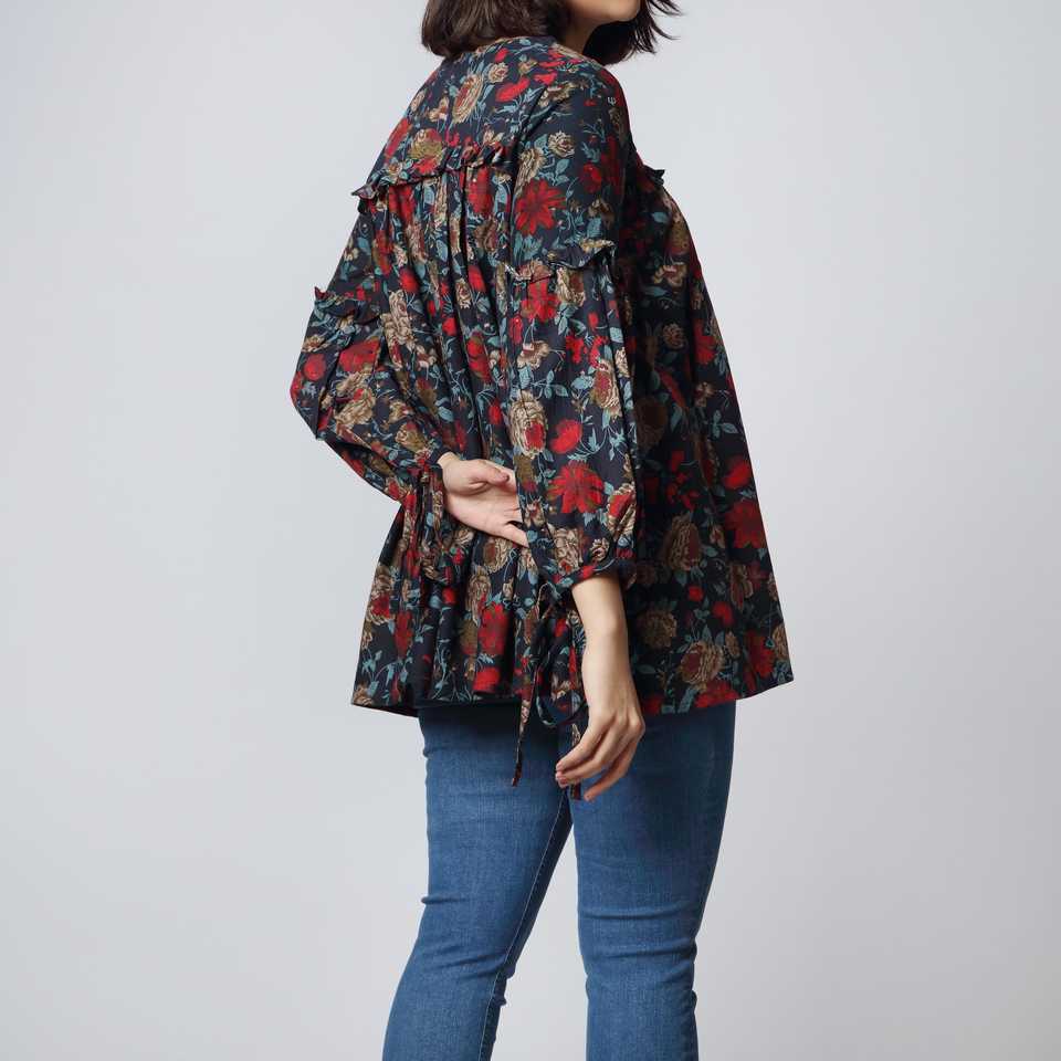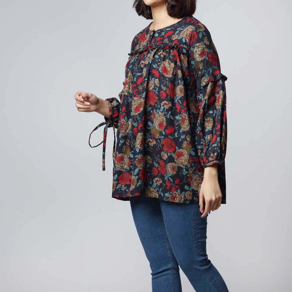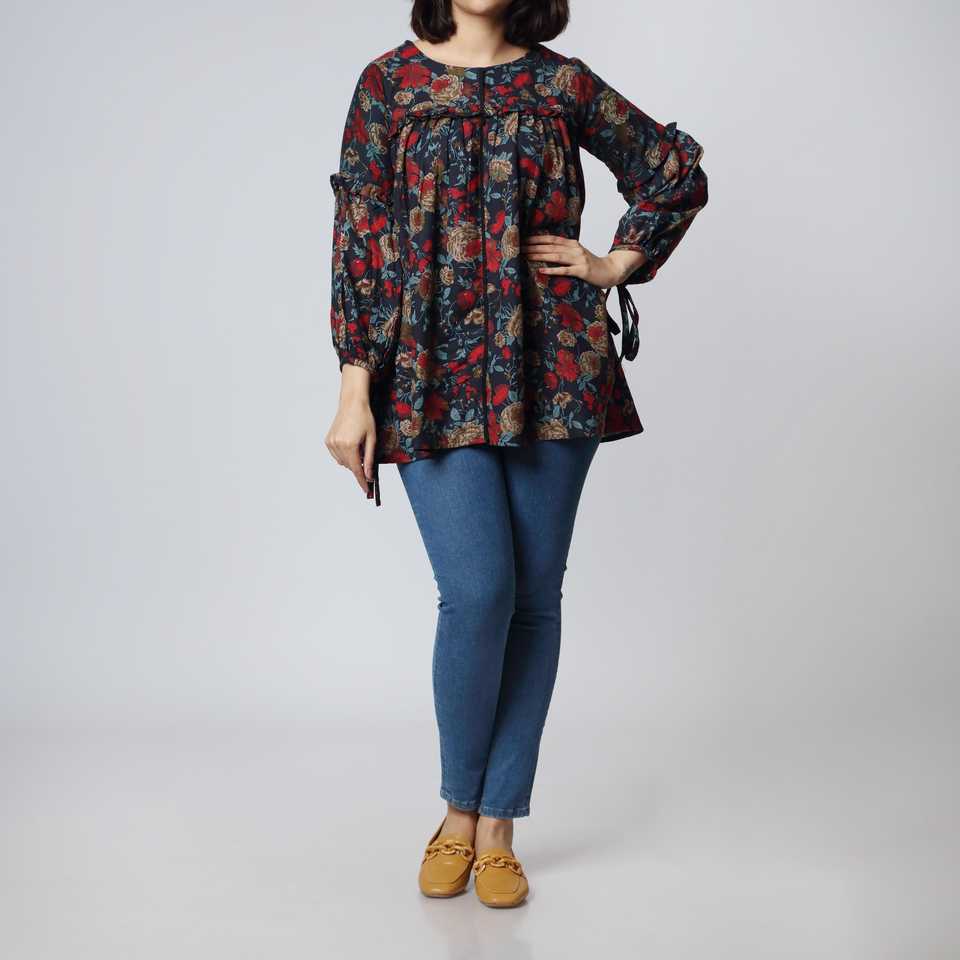เสื้อเชิ้ตผ้าสักหลาดพิมพ์ลาย 1 ชิ้น สีกรมท่า ไซส์ XS รุ่น PW2306