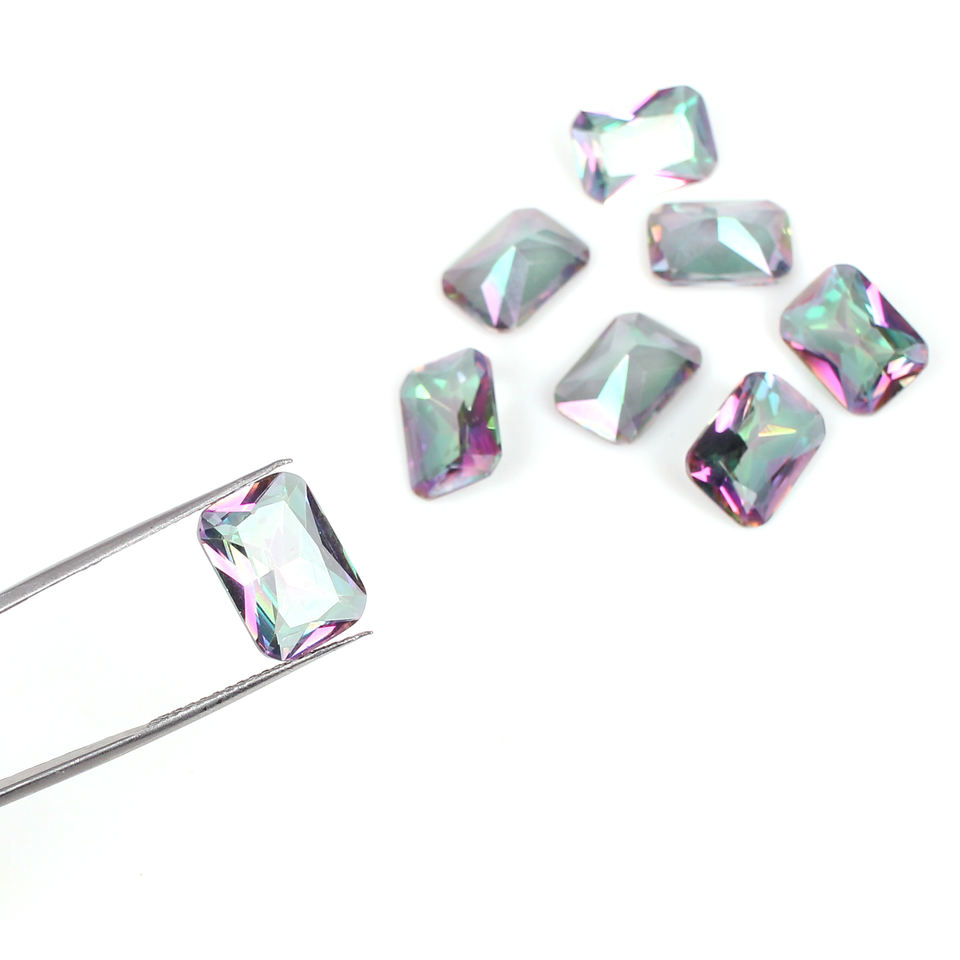 พลอยโทแพซธรรมชาติ 1 ชิ้น ขนาด 14x10 มม. ทรงแปดเหลี่ยม น้ำหนัก 5.05 กะรัต สำหรับทำเครื่องประดับแฮนด์เมด ต้นกำเนิดจากประเทศพม่า สีชมพู/เขียว