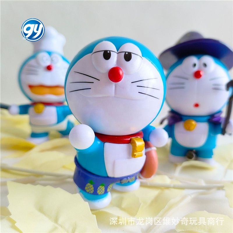 หุ่นฟิกเกอร์ตัวการ์ตูนอะนิเมะโดราเอม่อนโนบิตะชิซึกะทำมือตกแต่งเค้กโมเดลรถของเล่นของขวัญวันเกิดเด็ก1ชุด