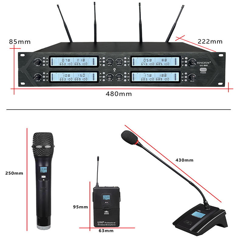 Product name:4 channel quad uhf dj wireless microphone system ktv