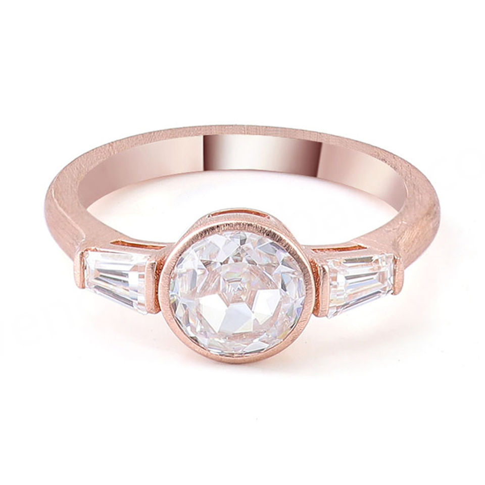 แหวนเพชรโมอิสซาไนต์ทรงกลม 1 กะรัต แบบสามเม็ด ทองคำแท้ 18k สีโรสโกลด์ สำหรับผู้หญิง แหวนแต่งงาน แหวนหมั้น