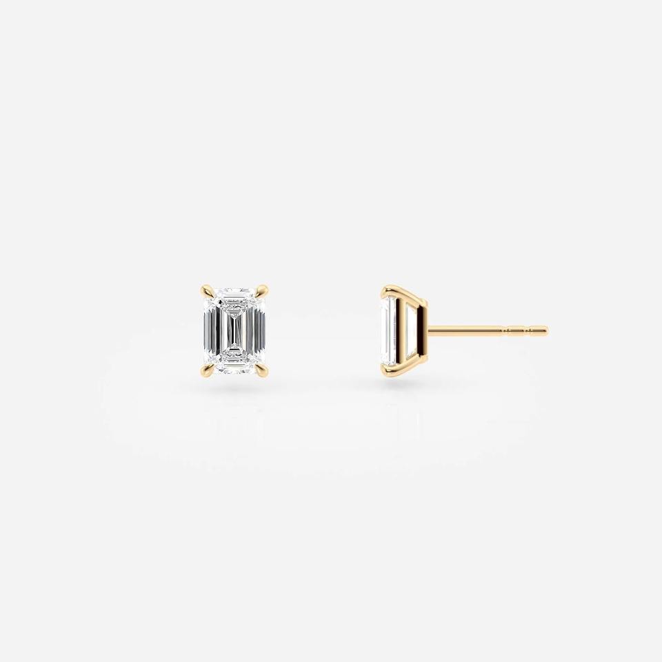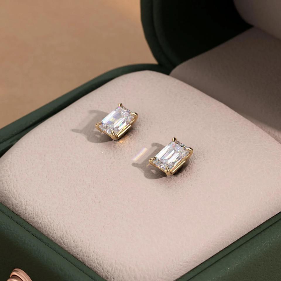 ต่างหูเพชรทรงเหลี่ยมมรกต 1 กะรัต เพชรเลี้ยงในห้องปฏิบัติการ_ ทองคำขาว 14K เครื่องประดับมินิมอล