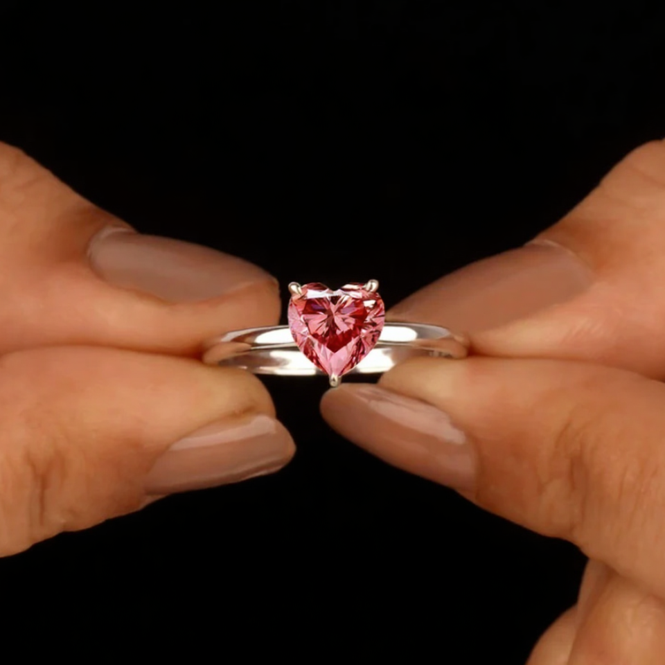 แหวนหมั้นเพชรเม็ดเดี่ยวสำหรับผู้ใหญ่แหวนเพชรรูปหัวใจสีชมพูแฟนซี1CT ได้รับการรับรองว่าเป็นแหวนทอง14K สำหรับทุกเพศ