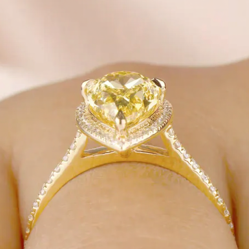 แหวนหมั้นเพชรเม็ดเดี่ยวทรงลูกแพร์สีเหลืองสดใสดูสวยงาม1CT แหวนหมั้นประดับเพชร14K สีทองเทียบกับความชัดเจน