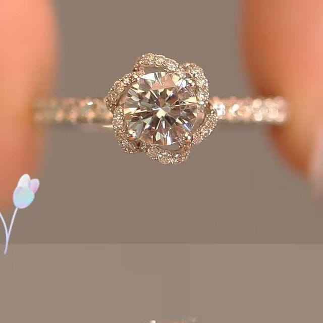 แหวนเพชรทรงกลมรูปดอกกุหลาบ 1 กะรัต ผลิตในห้องปฏิบัติการ ทองคำขาว 10k 14k 18k พร้อมใบรับรอง GIA/IGI สไตล์คลาสสิกสำหรับงานแต่งงาน