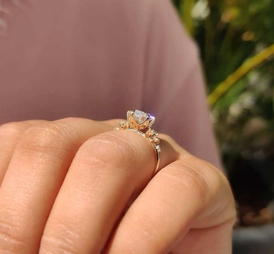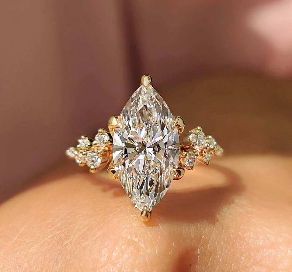 แหวนหมั้นเพชรทรงมาร์คีส์ 1 กะรัต เพาะเลี้ยงในห้องปฏิบัติการ ทองคำแท้ 14k/18k สี E/F ความสะอาด VVS/VS ปราศจากนิกเกิล จาก Avira Jewels