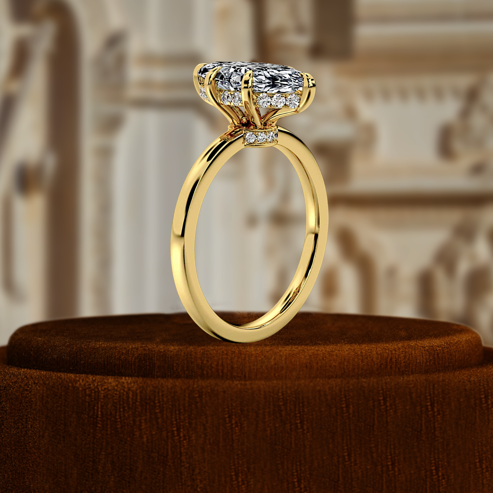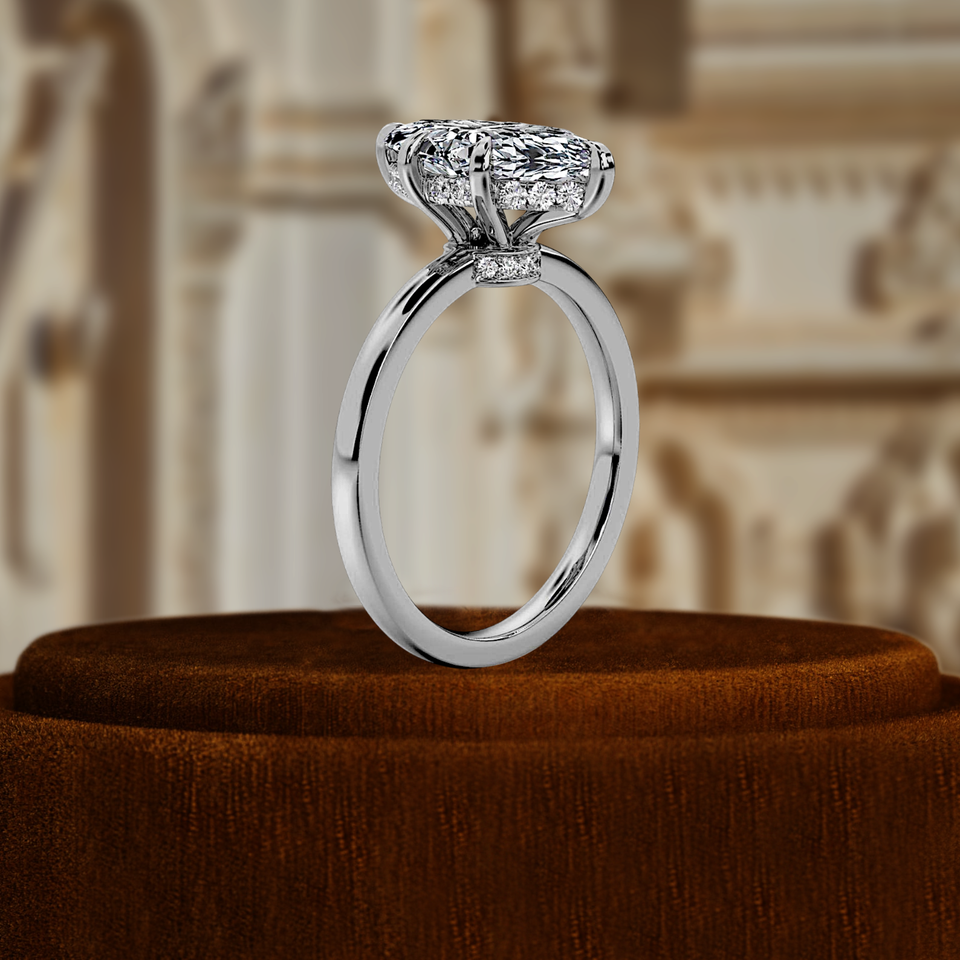 แหวนเพชรทรงมาร์คีส์ 1 กะรัต เพาะเลี้ยงในห้องปฏิบัติการ แหวนเพชรทองคำขาว 14K แหวนแต่งงานรับรองโดย IGI แหวนสัญญา