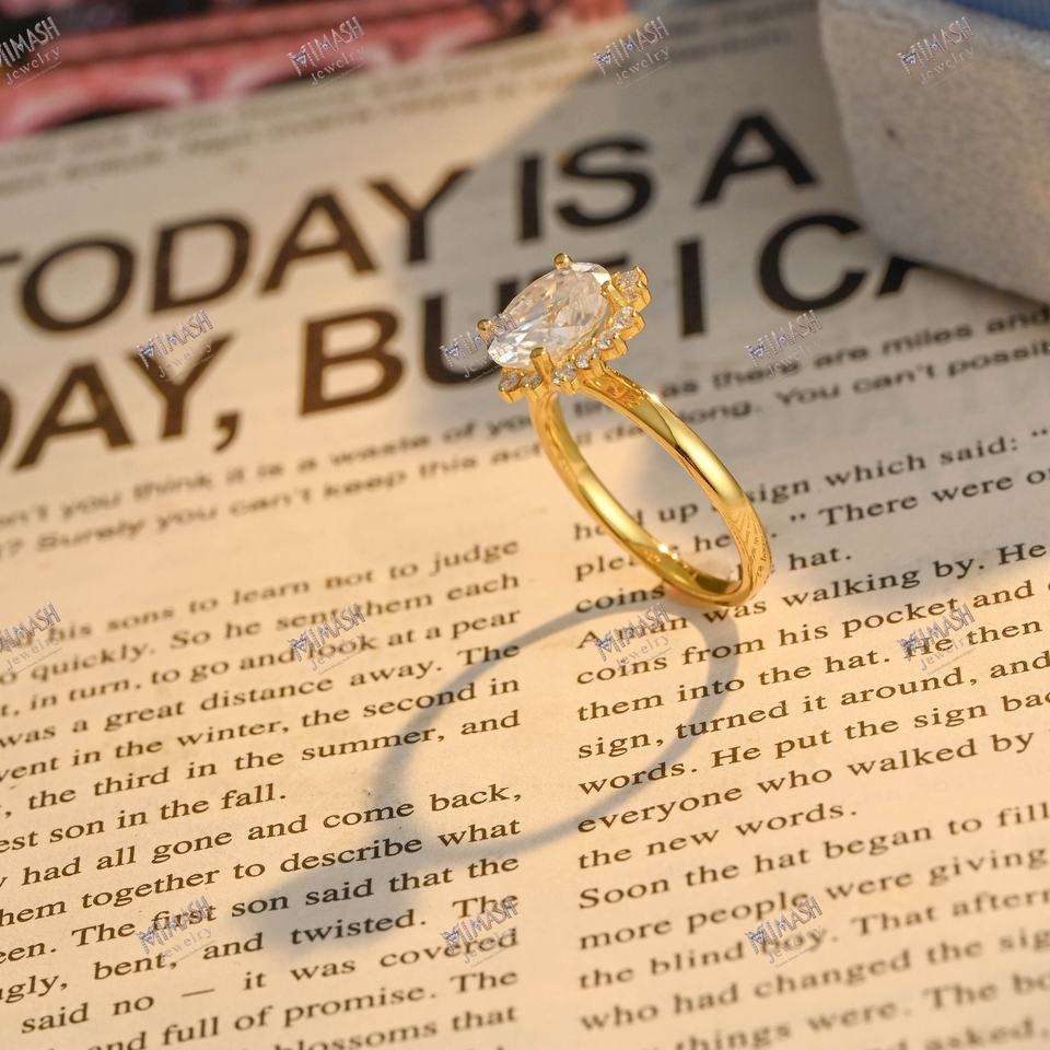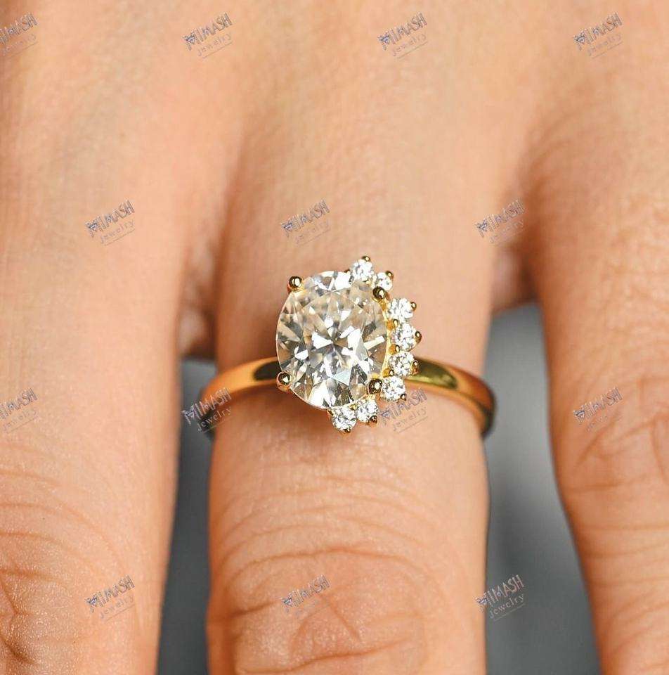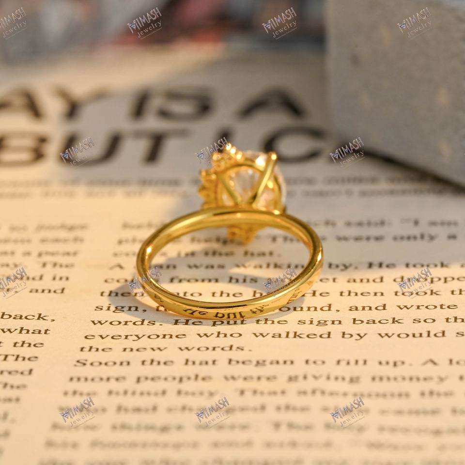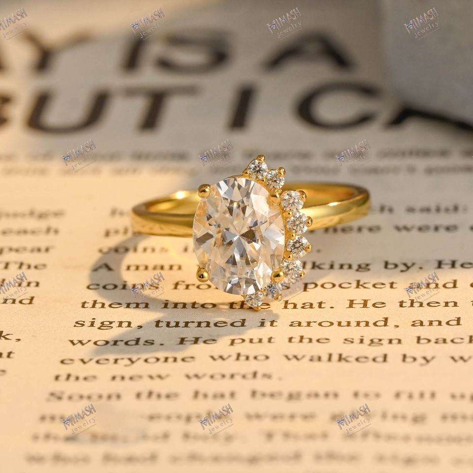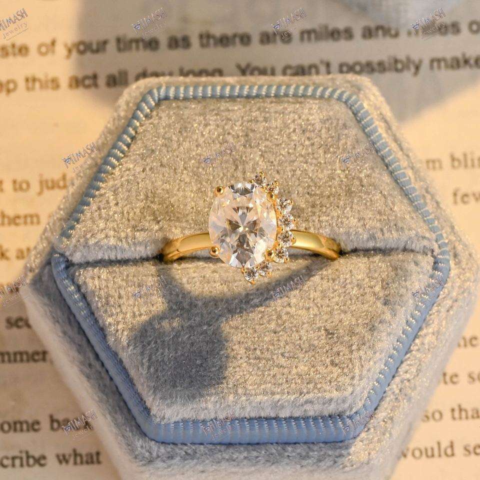 แหวนหมั้นเพชรทรงรี 1 กะรัต พร้อมขอบเพชรครึ่งวง แหวนทองคำแท้ดีไซน์หรูหราสำหรับผู้หญิง ของขวัญวันครบรอบที่สมบูรณ์แบบ