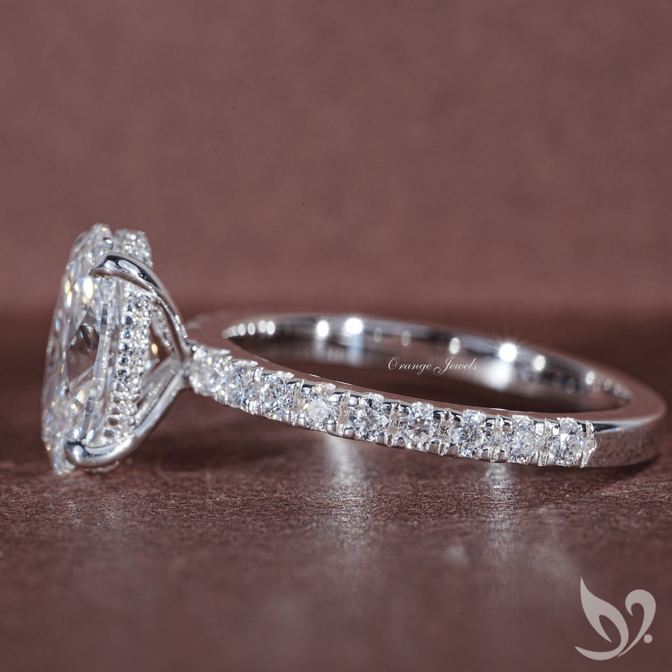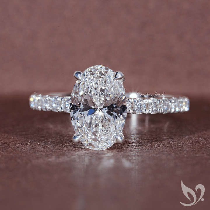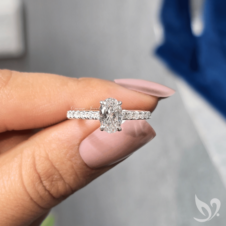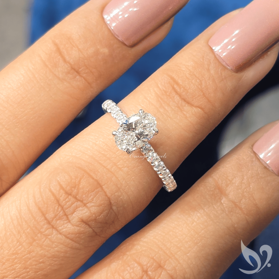 แหวนเพชรทรงรี 1 กะรัต เพชรเพาะเลี้ยงในห้องปฏิบัติการ ประดับเพชรเม็ดเดี่ยว | แหวนทองคำขาว 10K รับรองโดย IGI