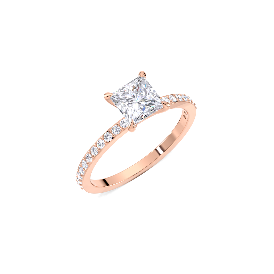 1ct Princess Cut Lab Diamond Engagement Ring for Women 9K Yellow White And Rose Gold Pave Band Bridal Wedding Ring