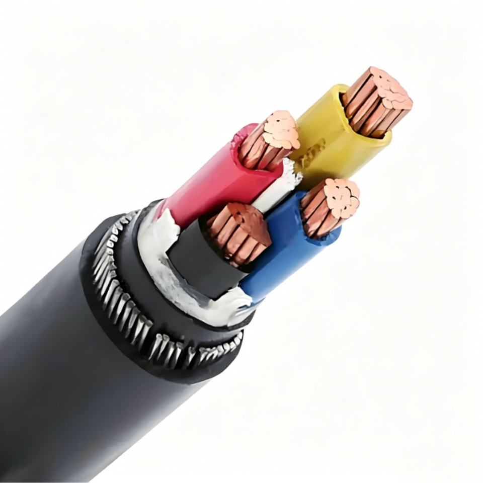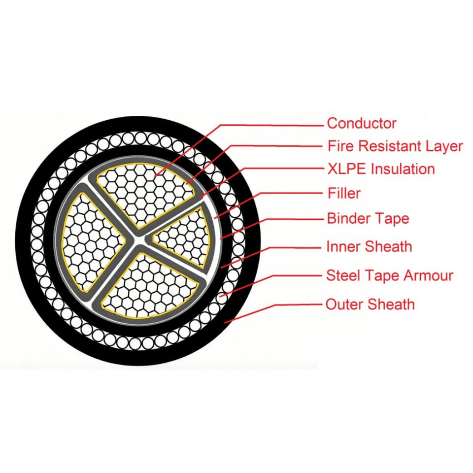 สายไฟฟ้าแรงต่ำ 1kV/II ชนิด Al ขนาด 3x95+1x50 มม.² แบบเซกเตอร์คอนดักเตอร์ ฉนวน XLPE หุ้มเหล็กเทป ปลอกหุ้ม LSZH ทนไฟ