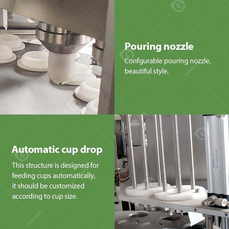 เครื่องบรรจุและปิดผนึกเนยถั่วโยเกิร์ตทรงกรวยเชิงเส้น1กก. ถ้วยพลาสติกเหลวสำหรับใส่โยเกิร์ต