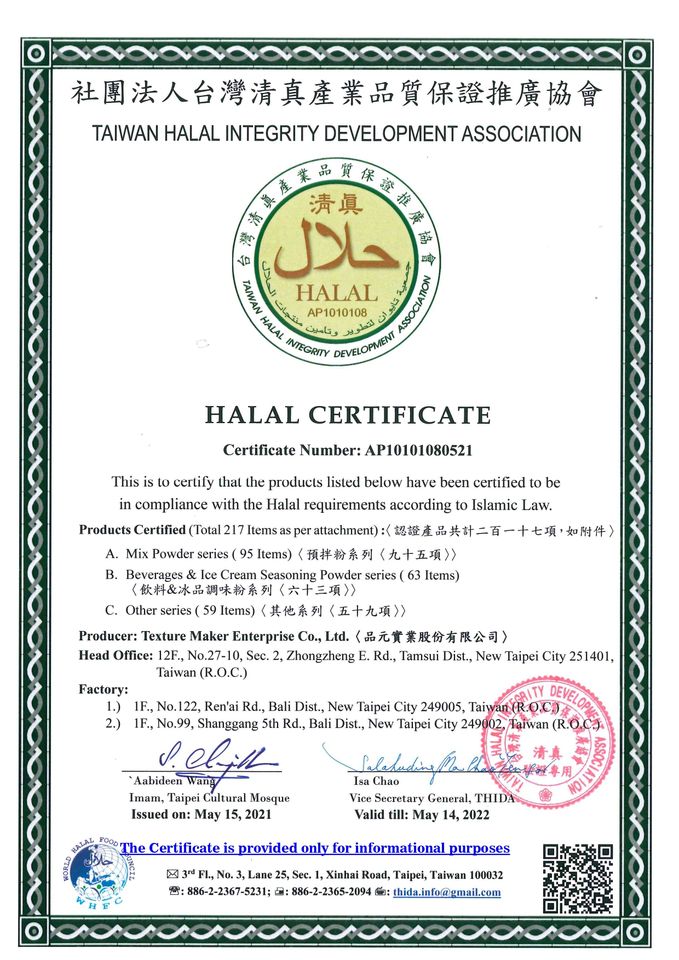 การรับรอง:HACCP, ISO 22000, 22000 fssc