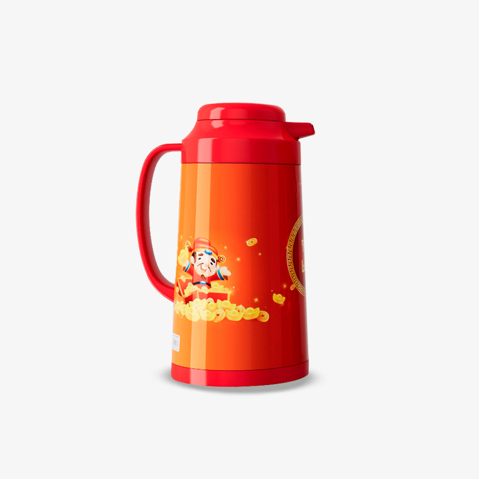 1l Tinplate Steel Vacuum Flask Thermos with Lunar New Year Pattern for Keeping Drinks Hot or Cold