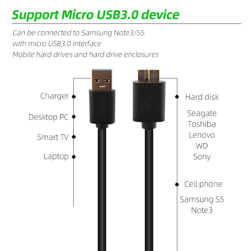 หมายเลขรุ่น:Micro B USB3.0 Data Cable