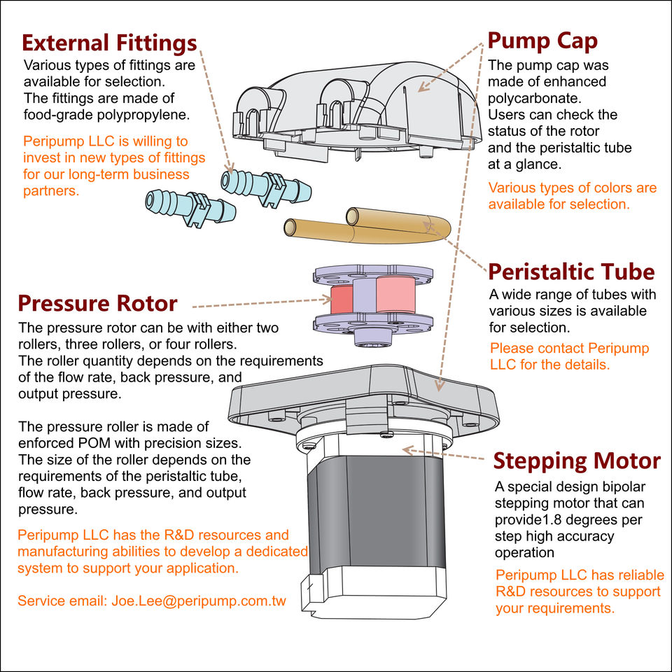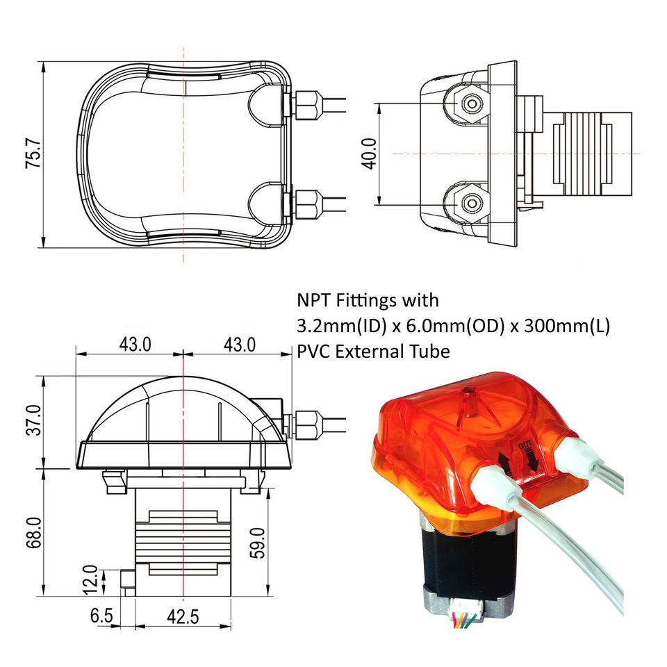 ปั๊มเพอริสตัลติก 1 มล./นาที 24 โวลต์ มอเตอร์แบบสเต็ปปิ้งสองขั้ว หัวปั๊มเปลี่ยนได้ เพอริปั๊ม สำหรับบำบัดน้ำดื่ม