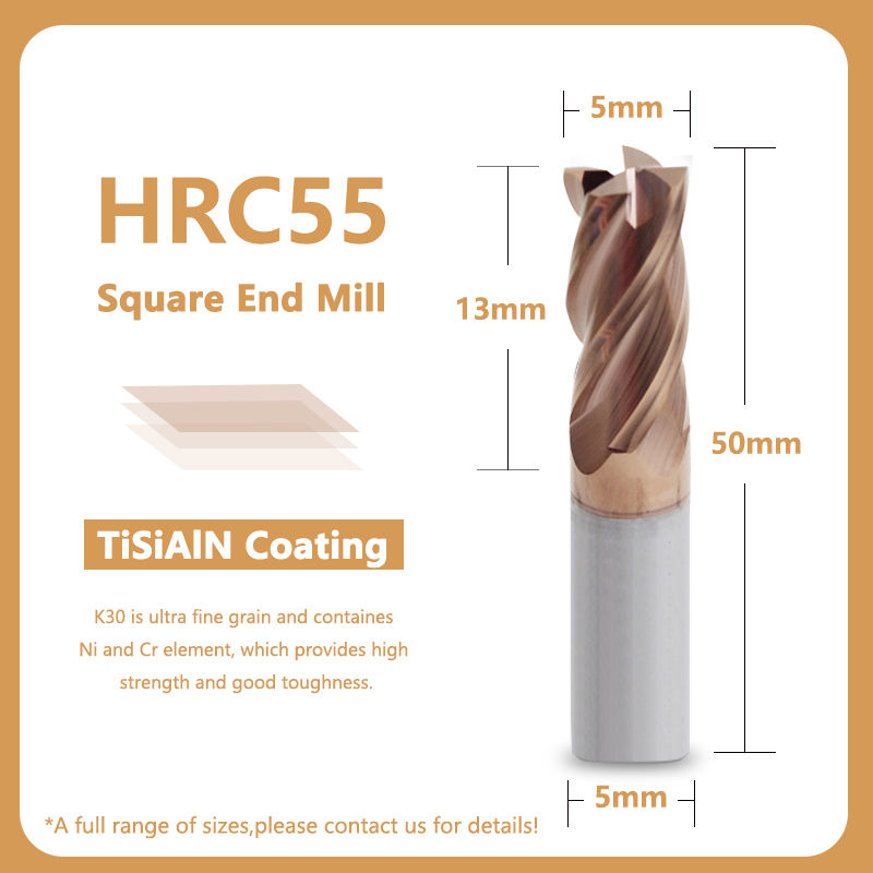 ดอกกัดสเตนเลสสตีลสำหรับงานกัดคาร์ไบด์แข็ง1-20มม. 4ดอก Hrc55เคลือบบรอนซ์ Naco3