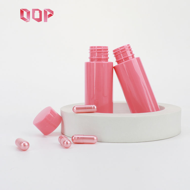 ขวดเครื่องสำอาง PET สีแดงกุหลาบ ขนาด 1 ออนซ์ 1.7 ออนซ์ 3.3 ออนซ์ ทรงสูง สำหรับบรรจุเซรั่ม แชมพู โลชั่น ฝาเกลียว ได้รับมาตรฐาน FDA GMP ISO ผลิตตามสั่ง