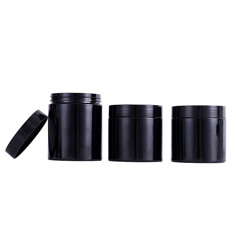 กระปุกพลาสติกสีดำสำหรับเครื่องสำอางขนาด 1 ออนซ์ 2 ออนซ์ 4 ออนซ์ 6 ออนซ์ 8 ออนซ์ 10 ออนซ์ 12 ออนซ์ 16 ออนซ์ 32 ออนซ์ พร้อมฝาสีดำ
