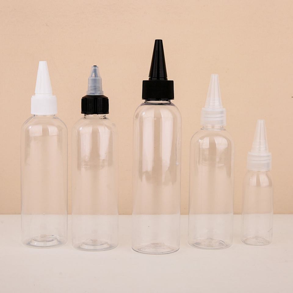 หัวฉีดพลาสติก PET แบบปลายแหลมสำหรับน้ำมันใส่ผม ขนาด 1 ออนซ์ 2 ออนซ์ 4 ออนซ์ 8 ออนซ์ 30 มล. 60 มล. 120 มล. 250 มล. 500 มล. สำหรับขวดพิมพ์ซิลค์สกรีนสำหรับเครื่องสำอาง