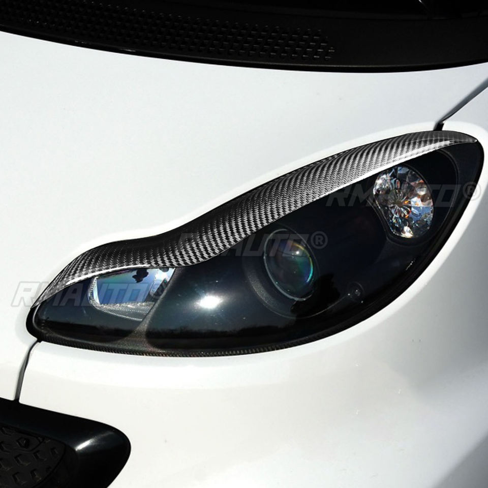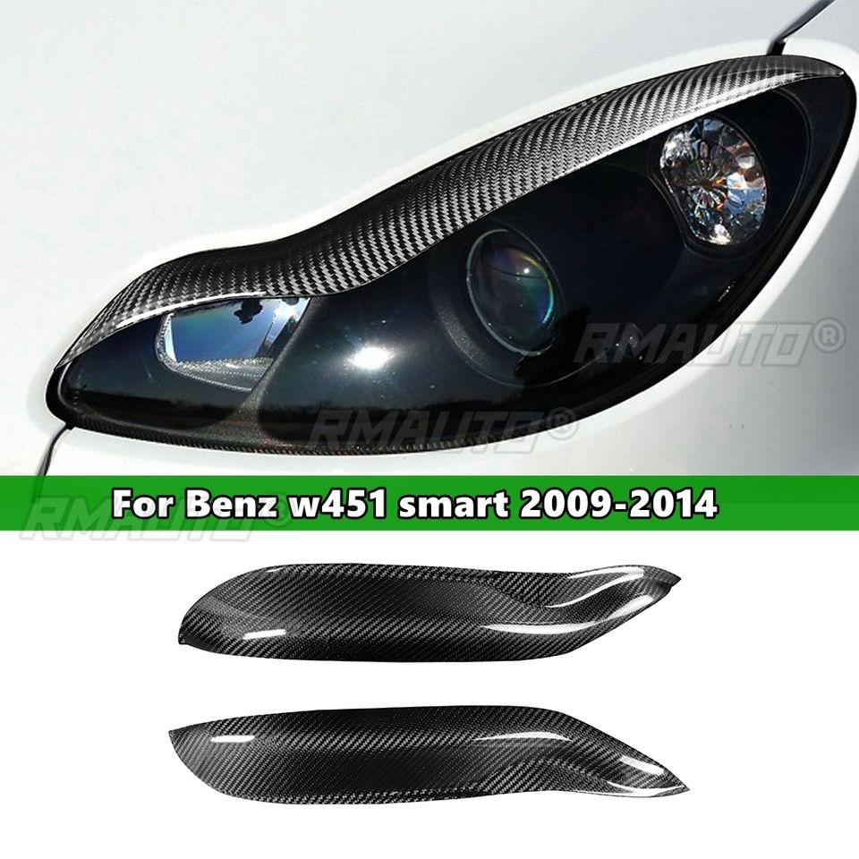 1pair Real Carbon Fiber Car Headlights Eyebrow Eyelids Trim Cover for Mercedes-Benz W451 Smart 2009 2010 2011 2012 2013 2014